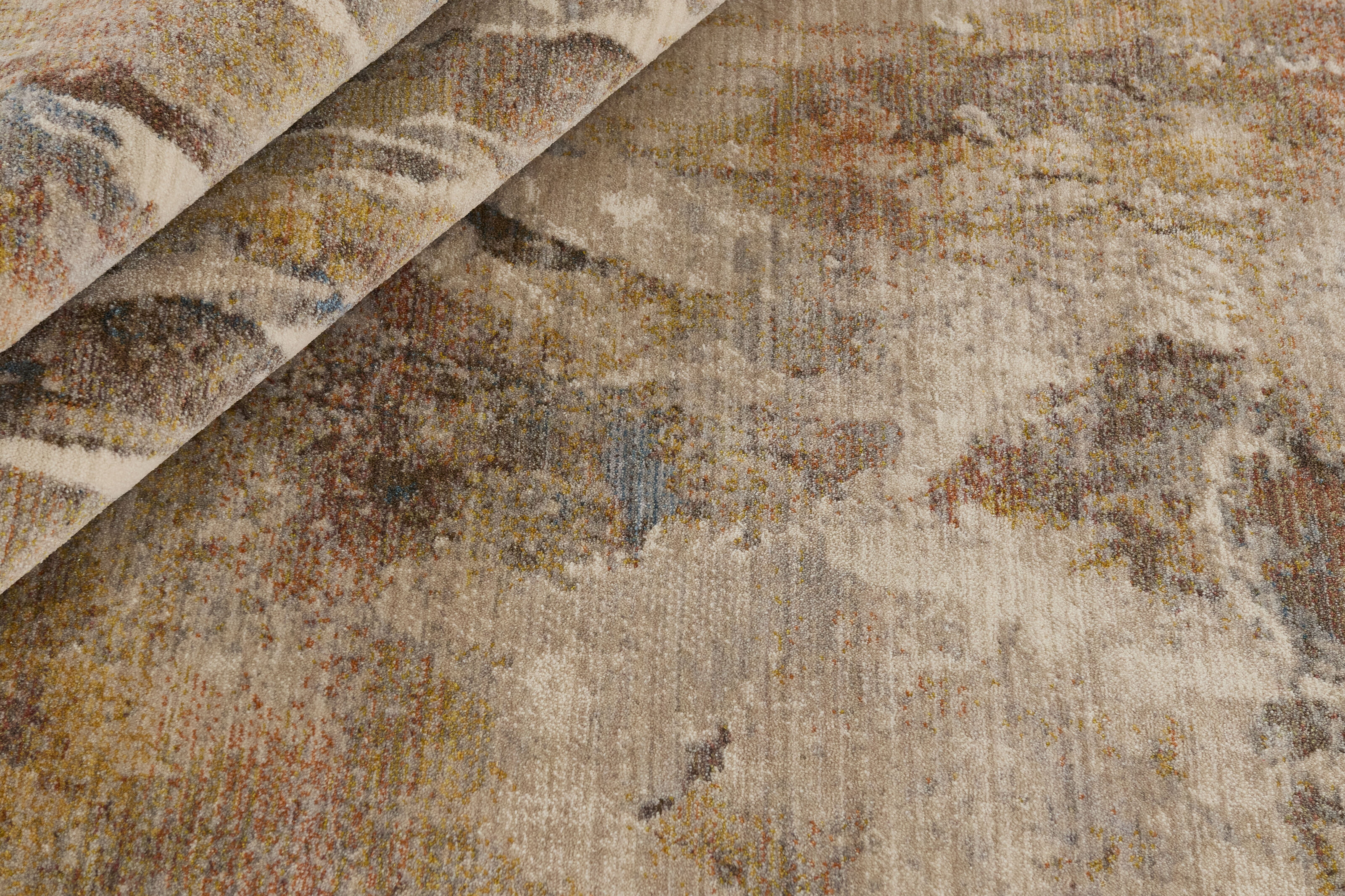 Everyday InfinityItem no.: MM503008 Size: 60 cm x 90 cmCrafted from soft polyester, the Everyday Infinity Collection blends abstract artistry with modern durability. Its layered designs echo shifting landscapes and painterly textures, where warm earth tones meet touches of blue, grey, and gold. Silky to the touch yet strong enough for everyday living, these rugs add depth, movement, and timeless character to any space.