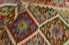 Afghan KelimItem no.: 1519062 Size: 86 cm x 243 cmAfghan Kelim rugs are hand woven by Turkmens in northern Afghanistan. Kelim is the name of a common Persian weave, but also of the technology used in the production. Kelims are primarily produced by nomads and are pile-less rugs, which are also used for bags, as wall decoration, or as curtains for tents. A natural colour scale with geometrical symbols and octagons is used.