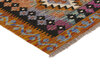 Afghan KelimItem no.: 1520298 Size: 180 cm x 237 cmAfghan Kelim rugs are hand woven by Turkmens in northern Afghanistan. Kelim is the name of a common Persian weave, but also of the technology used in the production. Kelims are primarily produced by nomads and are pile-less rugs, which are also used for bags, as wall decoration, or as curtains for tents. A natural colour scale with geometrical symbols and octagons is used.