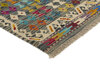 Afghan KelimItem no.: 1520526 Size: 149 cm x 211 cmAfghan Kelim rugs are hand woven by Turkmens in northern Afghanistan. Kelim is the name of a common Persian weave, but also of the technology used in the production. Kelims are primarily produced by nomads and are pile-less rugs, which are also used for bags, as wall decoration, or as curtains for tents. A natural colour scale with geometrical symbols and octagons is used.