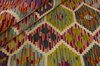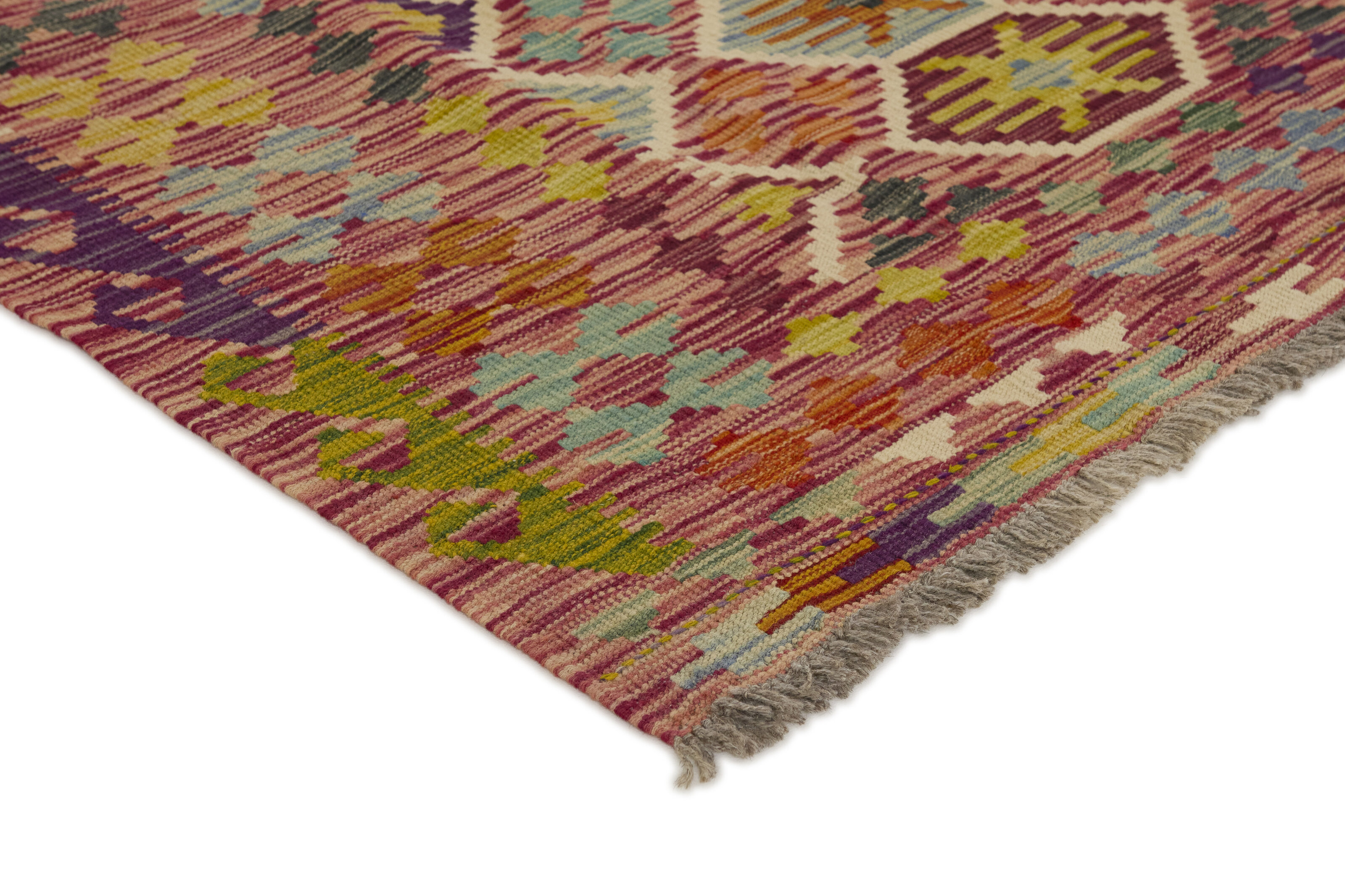 Afghan KelimItem no.: 1520538 Size: 179 cm x 248 cmAfghan Kelim rugs are hand woven by Turkmens in northern Afghanistan. Kelim is the name of a common Persian weave, but also of the technology used in the production. Kelims are primarily produced by nomads and are pile-less rugs, which are also used for bags, as wall decoration, or as curtains for tents. A natural colour scale with geometrical symbols and octagons is used.