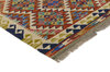 Afghan KelimItem no.: 1520564 Size: 80 cm x 177 cmAfghan Kelim rugs are hand woven by Turkmens in northern Afghanistan. Kelim is the name of a common Persian weave, but also of the technology used in the production. Kelims are primarily produced by nomads and are pile-less rugs, which are also used for bags, as wall decoration, or as curtains for tents. A natural colour scale with geometrical symbols and octagons is used.