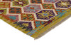 Afghan KelimItem no.: 1520951 Size: 85 cm x 246 cmAfghan Kelim rugs are hand woven by Turkmens in northern Afghanistan. Kelim is the name of a common Persian weave, but also of the technology used in the production. Kelims are primarily produced by nomads and are pile-less rugs, which are also used for bags, as wall decoration, or as curtains for tents. A natural colour scale with geometrical symbols and octagons is used.