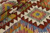 Afghan KelimItem no.: 1520956 Size: 84 cm x 247 cmAfghan Kelim rugs are hand woven by Turkmens in northern Afghanistan. Kelim is the name of a common Persian weave, but also of the technology used in the production. Kelims are primarily produced by nomads and are pile-less rugs, which are also used for bags, as wall decoration, or as curtains for tents. A natural colour scale with geometrical symbols and octagons is used.