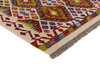 Afghan KelimItem no.: 1521372 Size: 97 cm x 153 cmAfghan Kelim rugs are hand woven by Turkmens in northern Afghanistan. Kelim is the name of a common Persian weave, but also of the technology used in the production. Kelims are primarily produced by nomads and are pile-less rugs, which are also used for bags, as wall decoration, or as curtains for tents. A natural colour scale with geometrical symbols and octagons is used.
