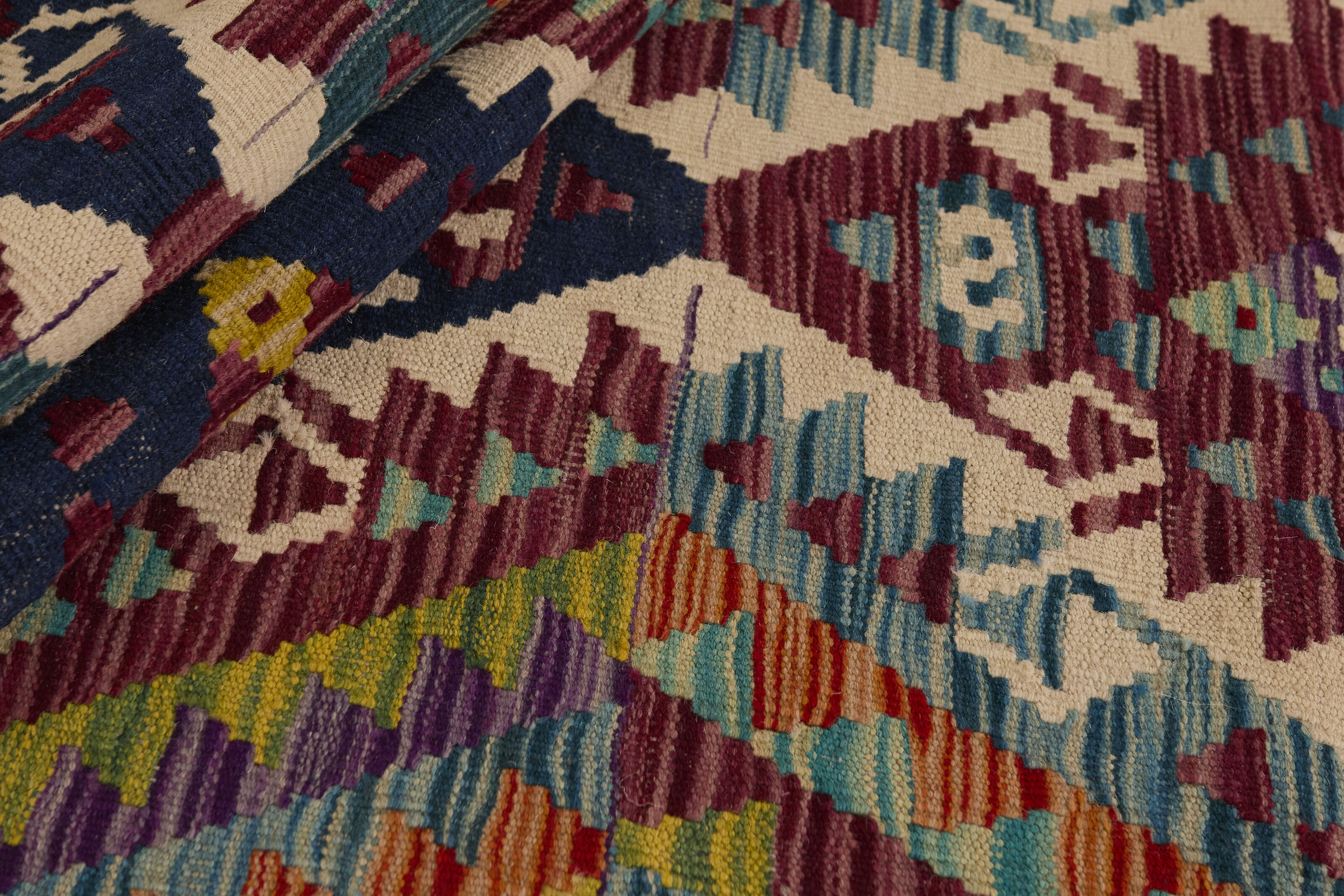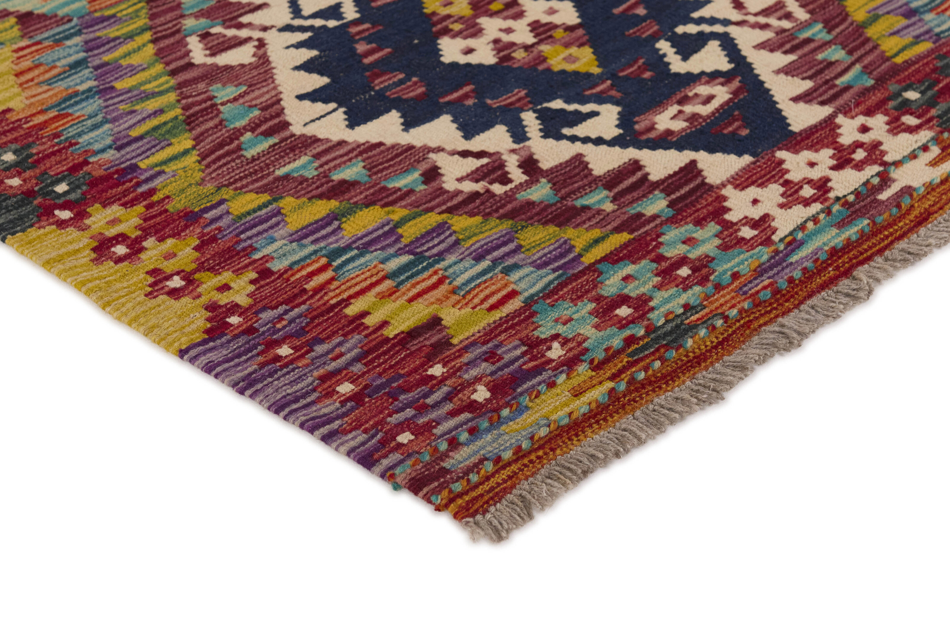 Afghan KelimItem no.: 1521497 Size: 83 cm x 307 cmAfghan Kelim rugs are hand woven by Turkmens in northern Afghanistan. Kelim is the name of a common Persian weave, but also of the technology used in the production. Kelims are primarily produced by nomads and are pile-less rugs, which are also used for bags, as wall decoration, or as curtains for tents. A natural colour scale with geometrical symbols and octagons is used.