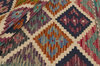 Afghan KelimItem no.: 1521545 Size: 59 cm x 145 cmAfghan Kelim rugs are hand woven by Turkmens in northern Afghanistan. Kelim is the name of a common Persian weave, but also of the technology used in the production. Kelims are primarily produced by nomads and are pile-less rugs, which are also used for bags, as wall decoration, or as curtains for tents. A natural colour scale with geometrical symbols and octagons is used.