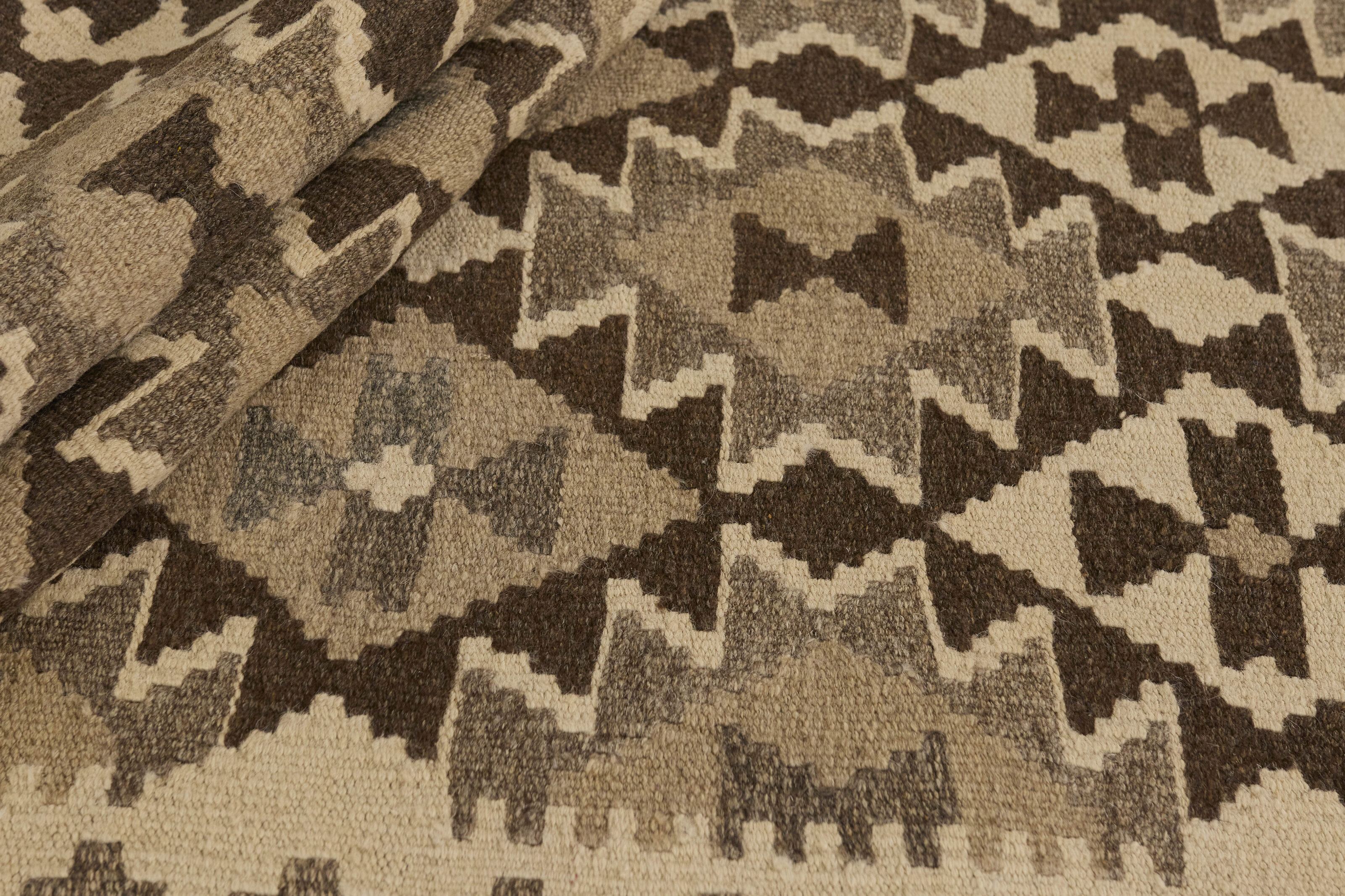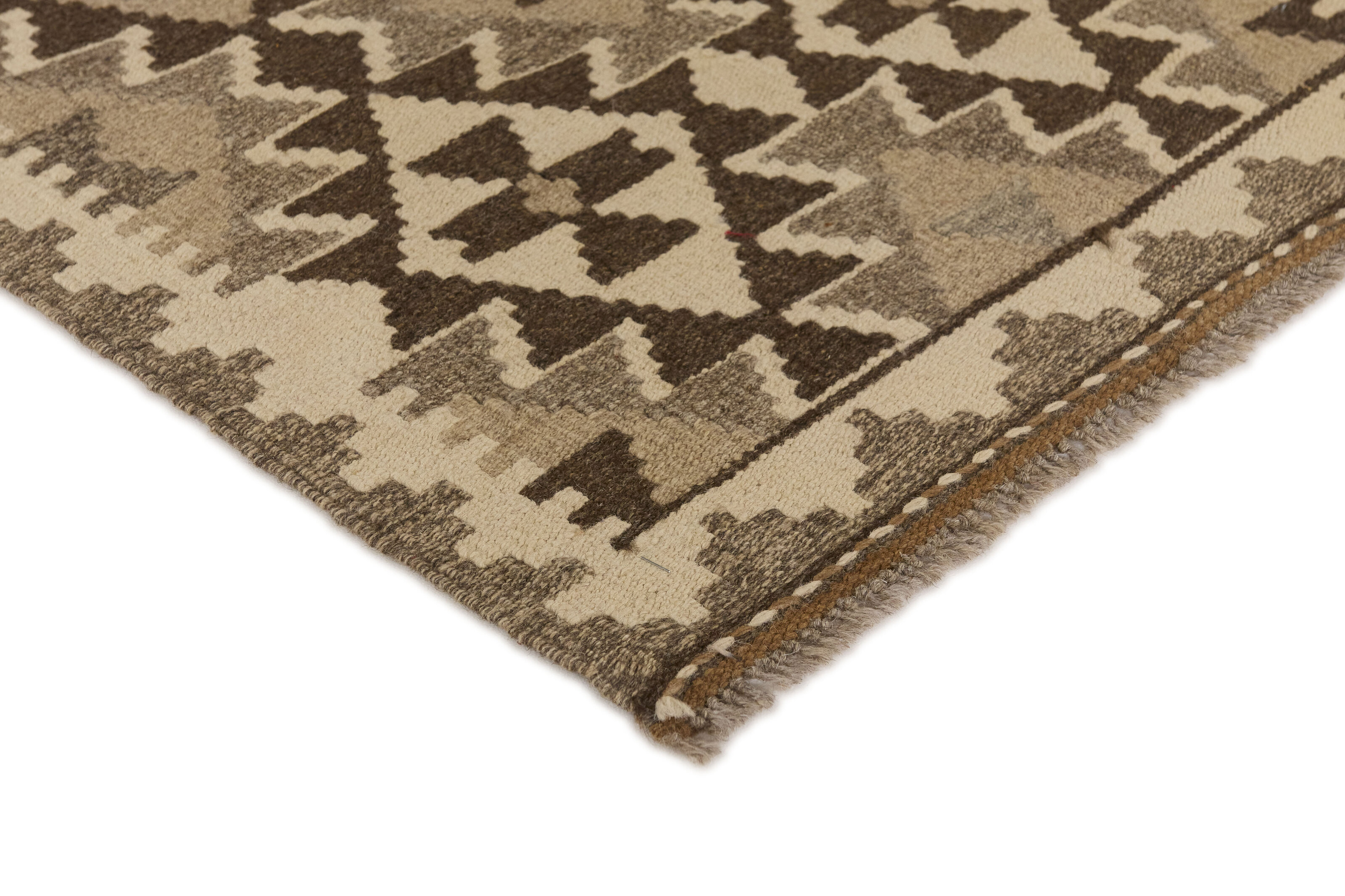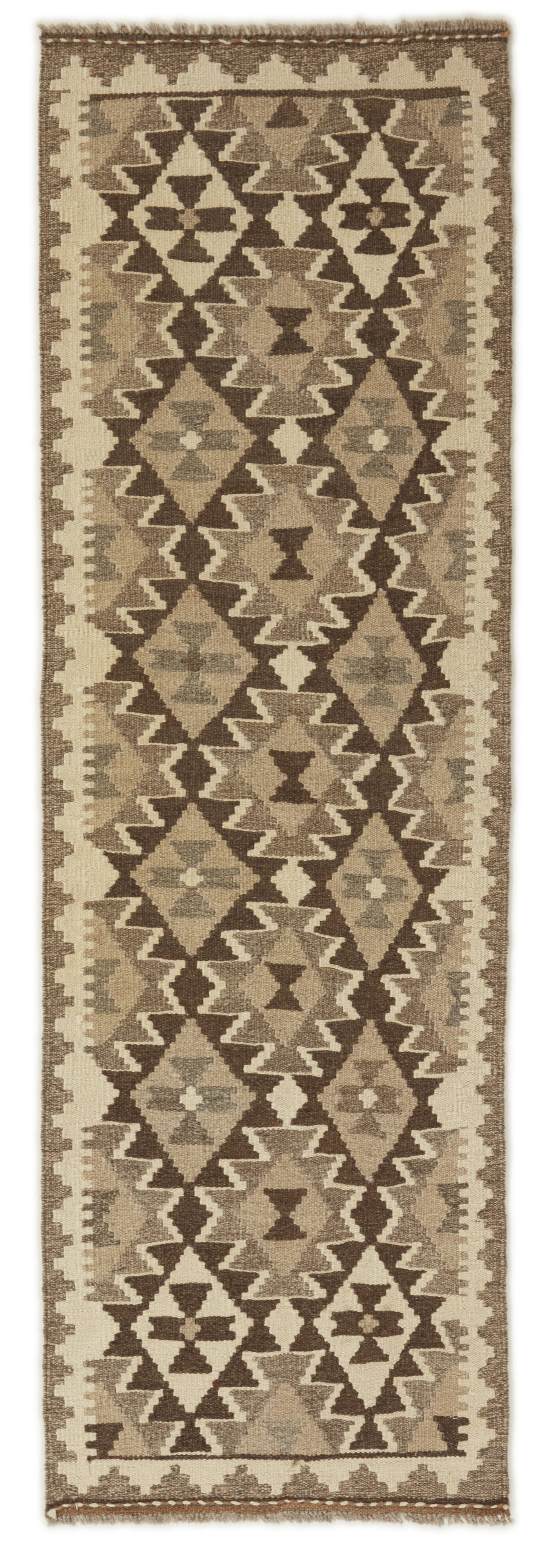 Afghan KelimItem no.: 1521608 Size: 60 cm x 191 cmAfghan Kelim rugs are hand woven by Turkmens in northern Afghanistan. Kelim is the name of a common Persian weave, but also of the technology used in the production. Kelims are primarily produced by nomads and are pile-less rugs, which are also used for bags, as wall decoration, or as curtains for tents. A natural colour scale with geometrical symbols and octagons is used.