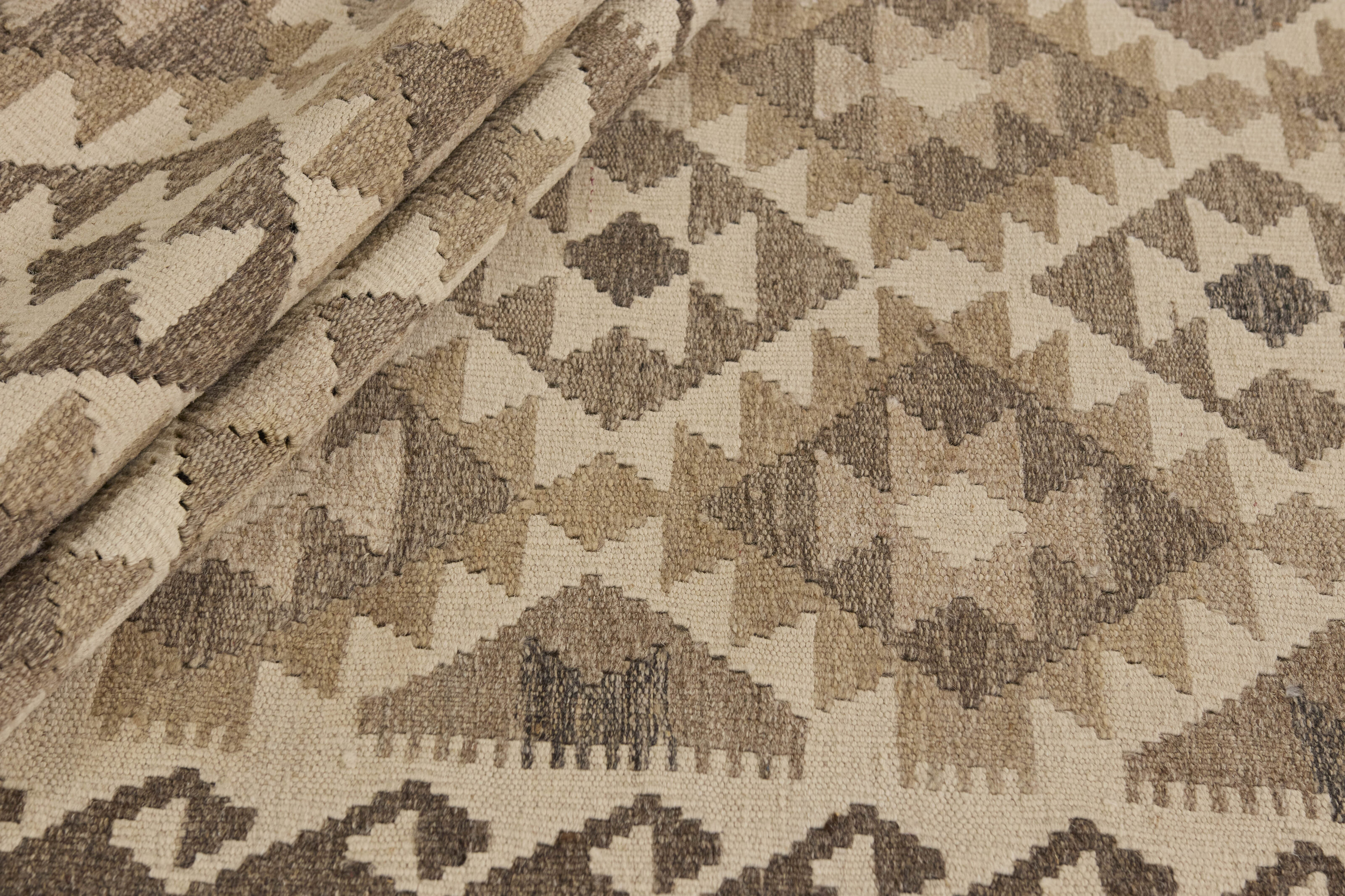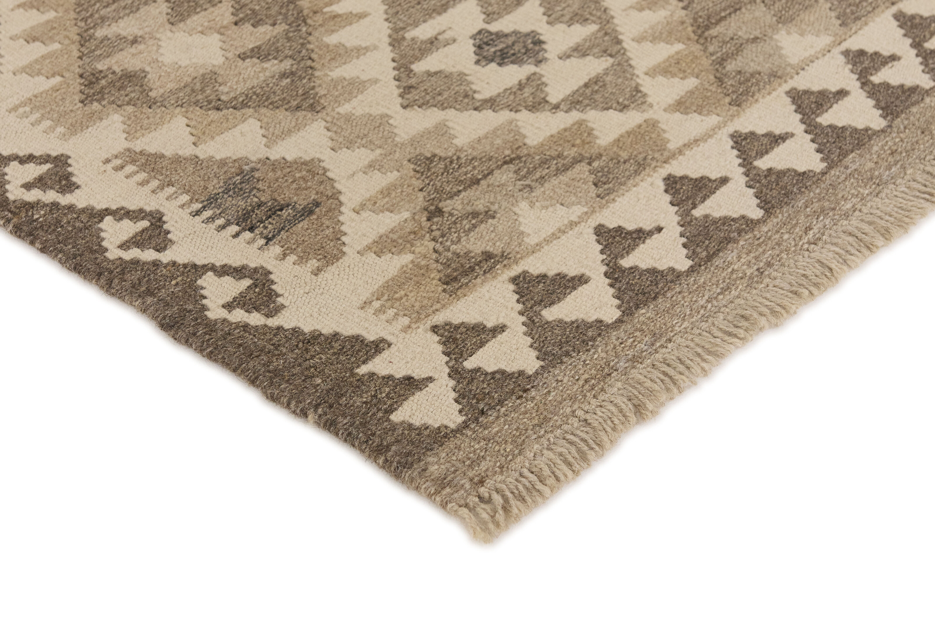Afghan KelimItem no.: 1521617 Size: 65 cm x 195 cmAfghan Kelim rugs are hand woven by Turkmens in northern Afghanistan. Kelim is the name of a common Persian weave, but also of the technology used in the production. Kelims are primarily produced by nomads and are pile-less rugs, which are also used for bags, as wall decoration, or as curtains for tents. A natural colour scale with geometrical symbols and octagons is used.