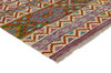 Afghan KelimItem no.: 1521659 Size: 167 cm x 237 cmAfghan Kelim rugs are hand woven by Turkmens in northern Afghanistan. Kelim is the name of a common Persian weave, but also of the technology used in the production. Kelims are primarily produced by nomads and are pile-less rugs, which are also used for bags, as wall decoration, or as curtains for tents. A natural colour scale with geometrical symbols and octagons is used.
