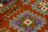 Afghan KelimItem no.: 1521674 Size: 173 cm x 244 cmAfghan Kelim rugs are hand woven by Turkmens in northern Afghanistan. Kelim is the name of a common Persian weave, but also of the technology used in the production. Kelims are primarily produced by nomads and are pile-less rugs, which are also used for bags, as wall decoration, or as curtains for tents. A natural colour scale with geometrical symbols and octagons is used.
