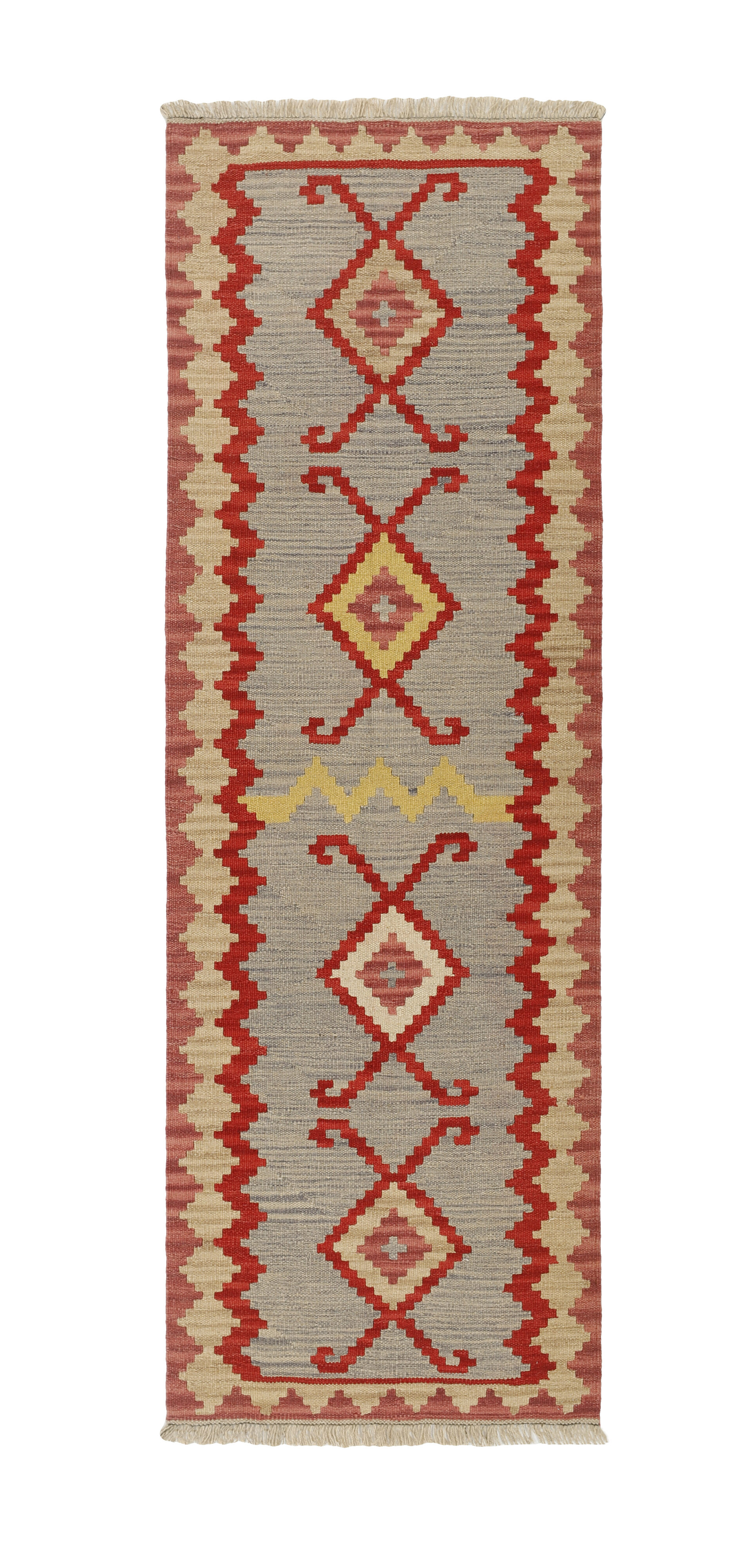 KelimItem no.: 1519207 Size: 82 cm x 251 cmThese Kelims are flat woven rugs, woven by nomads in western Persia. A special weaving technique is used, giving the rug a thinner, flatter surface, with no pile. Kelims are also quicker to produce, compared to common Oriental rugs. The colours are natural and no two rugs are alike. Kelims are produced in several regions and under many names, but the most well known Kelim types are Seneh, Sumak, Fars, and Kelim Gashghai.