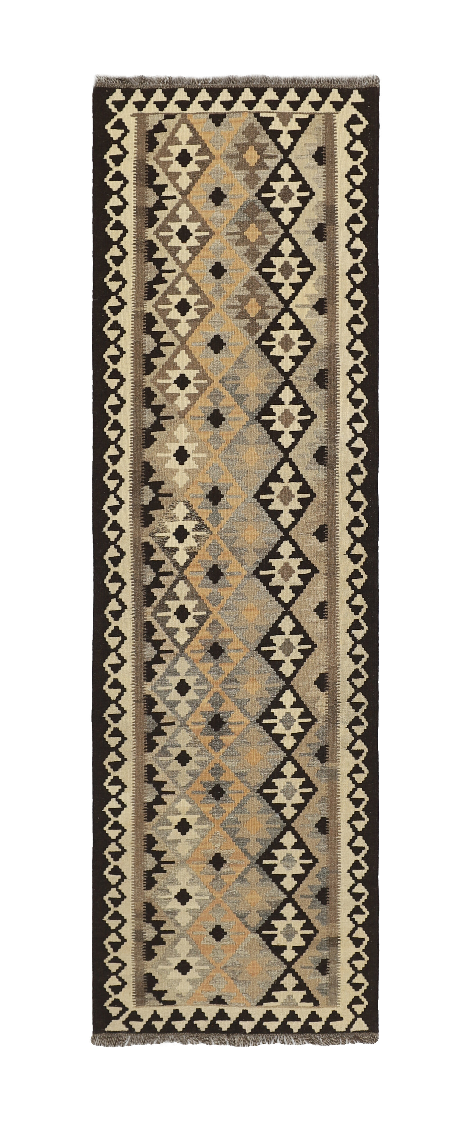 KelimItem no.: 1519208 Size: 82 cm x 285 cmThese Kelims are flat woven rugs, woven by nomads in western Persia. A special weaving technique is used, giving the rug a thinner, flatter surface, with no pile. Kelims are also quicker to produce, compared to common Oriental rugs. The colours are natural and no two rugs are alike. Kelims are produced in several regions and under many names, but the most well known Kelim types are Seneh, Sumak, Fars, and Kelim Gashghai.