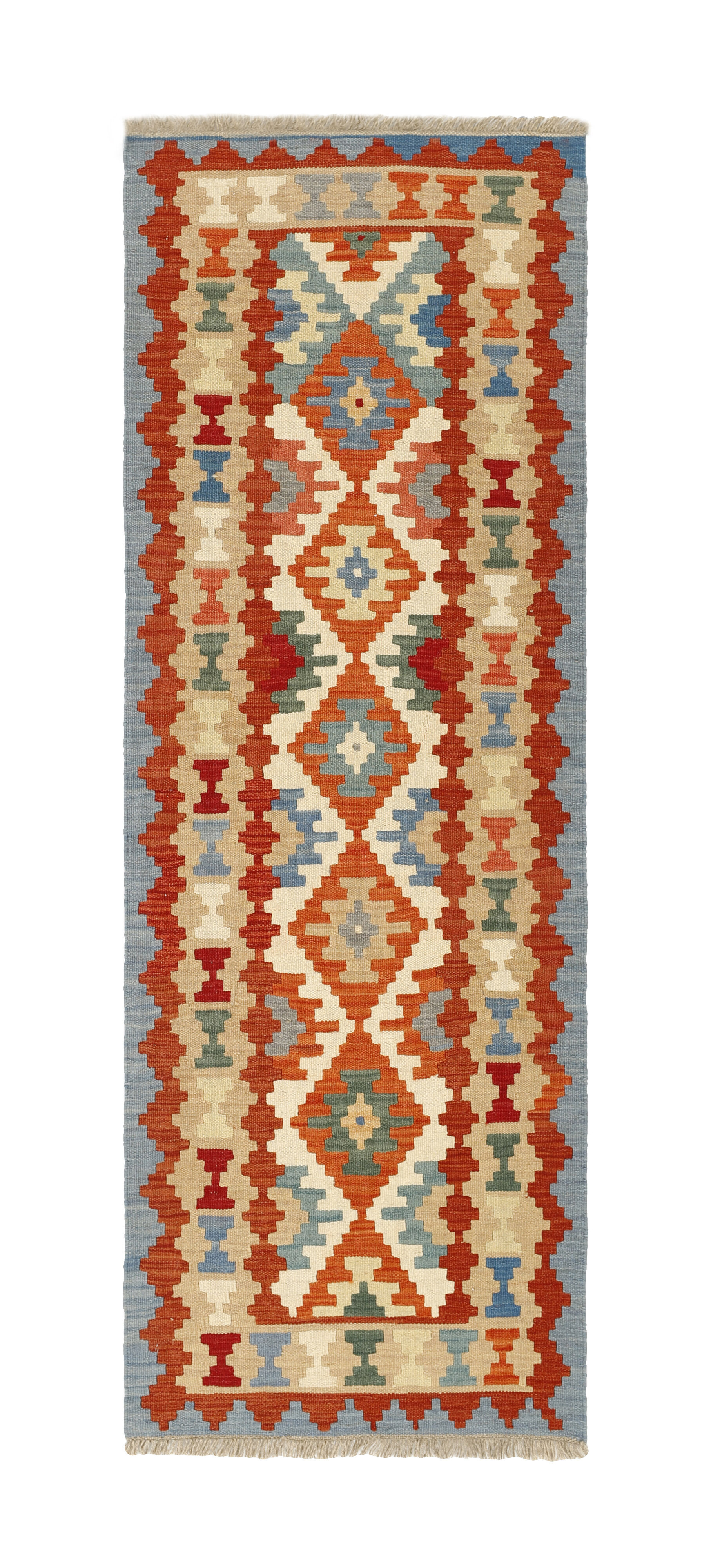 KelimItem no.: 1519212 Size: 83 cm x 238 cmThese Kelims are flat woven rugs, woven by nomads in western Persia. A special weaving technique is used, giving the rug a thinner, flatter surface, with no pile. Kelims are also quicker to produce, compared to common Oriental rugs. The colours are natural and no two rugs are alike. Kelims are produced in several regions and under many names, but the most well known Kelim types are Seneh, Sumak, Fars, and Kelim Gashghai.