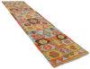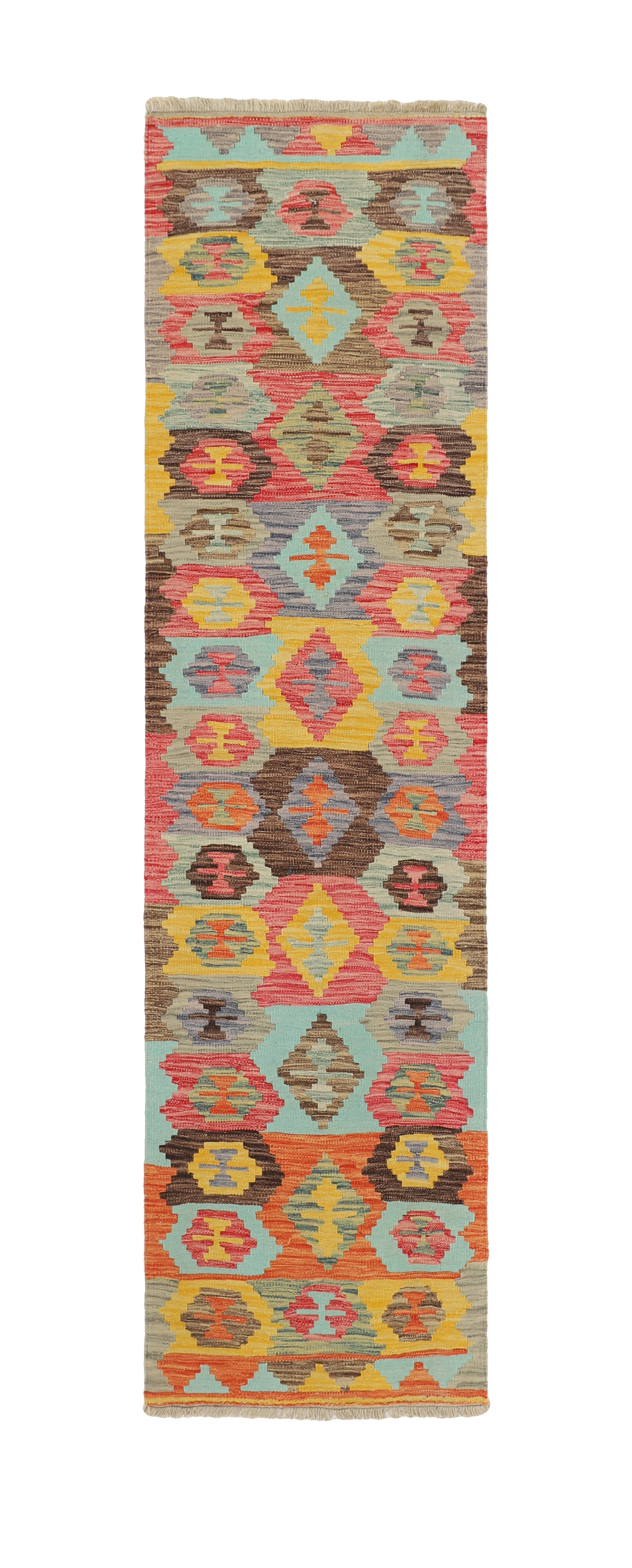 KelimItem no.: 1519215 Size: 79 cm x 307 cmThese Kelims are flat woven rugs, woven by nomads in western Persia. A special weaving technique is used, giving the rug a thinner, flatter surface, with no pile. Kelims are also quicker to produce, compared to common Oriental rugs. The colours are natural and no two rugs are alike. Kelims are produced in several regions and under many names, but the most well known Kelim types are Seneh, Sumak, Fars, and Kelim Gashghai.