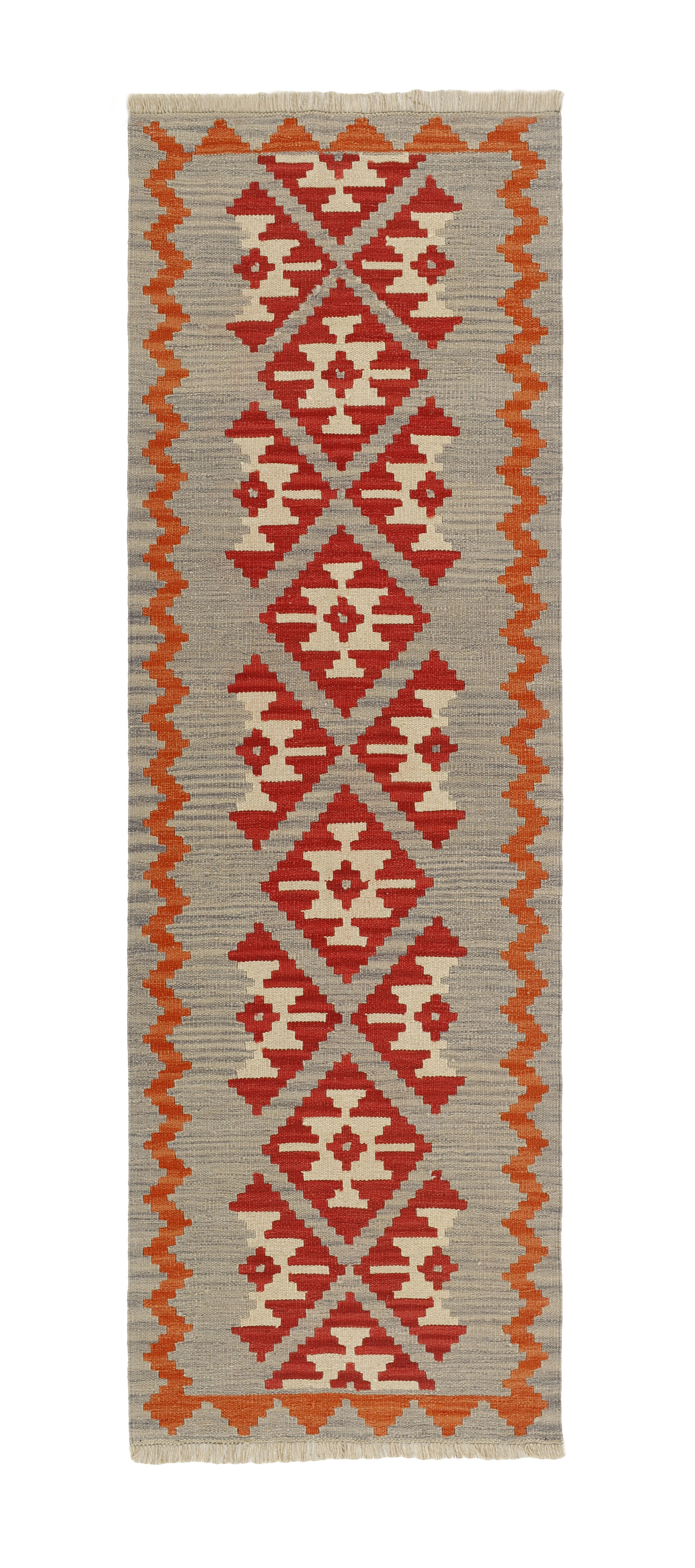 KelimItem no.: 1519218 Size: 83 cm x 261 cmThese Kelims are flat woven rugs, woven by nomads in western Persia. A special weaving technique is used, giving the rug a thinner, flatter surface, with no pile. Kelims are also quicker to produce, compared to common Oriental rugs. The colours are natural and no two rugs are alike. Kelims are produced in several regions and under many names, but the most well known Kelim types are Seneh, Sumak, Fars, and Kelim Gashghai.