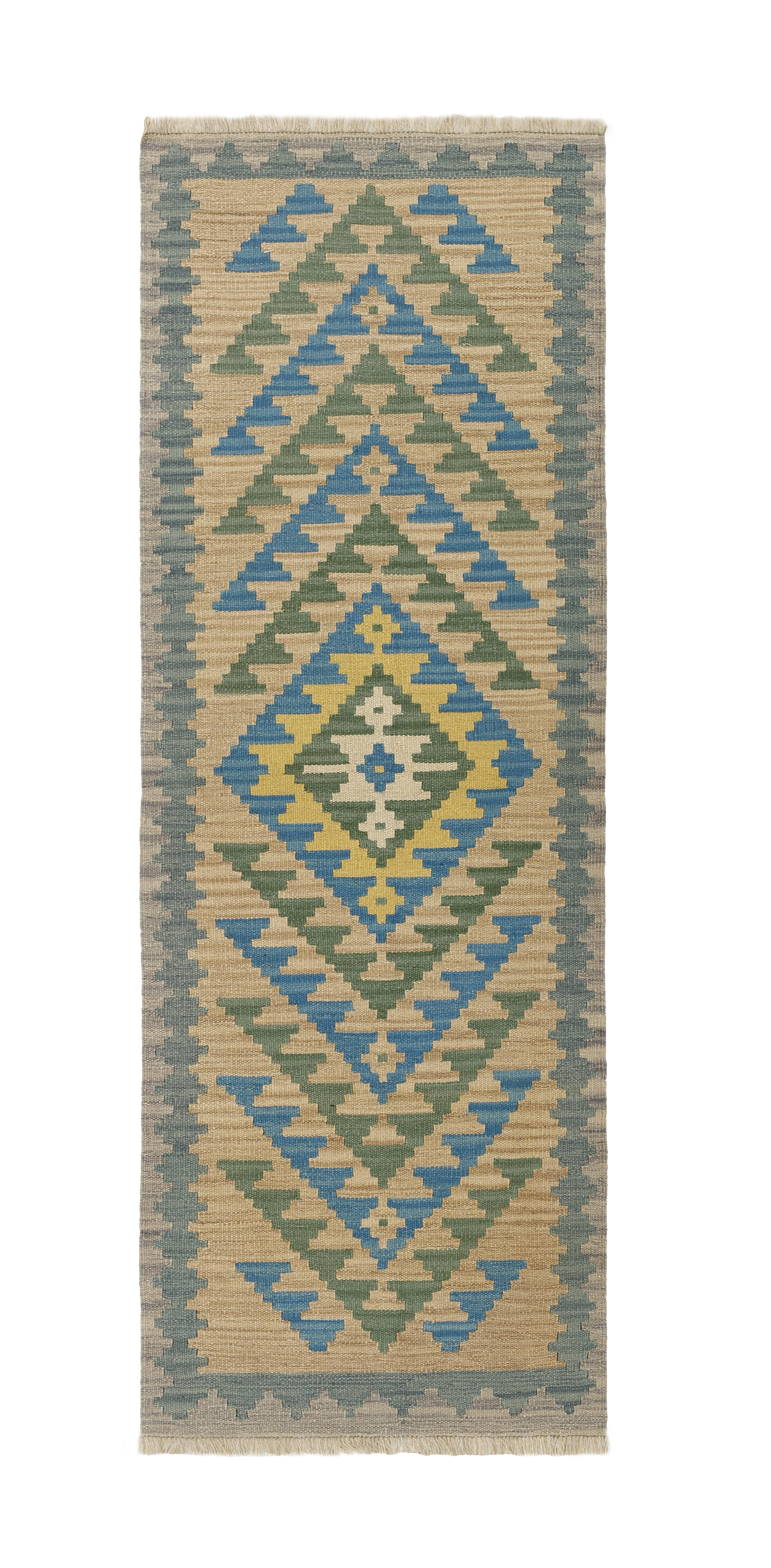 KelimItem no.: 1519220 Size: 81 cm x 243 cmThese Kelims are flat woven rugs, woven by nomads in western Persia. A special weaving technique is used, giving the rug a thinner, flatter surface, with no pile. Kelims are also quicker to produce, compared to common Oriental rugs. The colours are natural and no two rugs are alike. Kelims are produced in several regions and under many names, but the most well known Kelim types are Seneh, Sumak, Fars, and Kelim Gashghai.