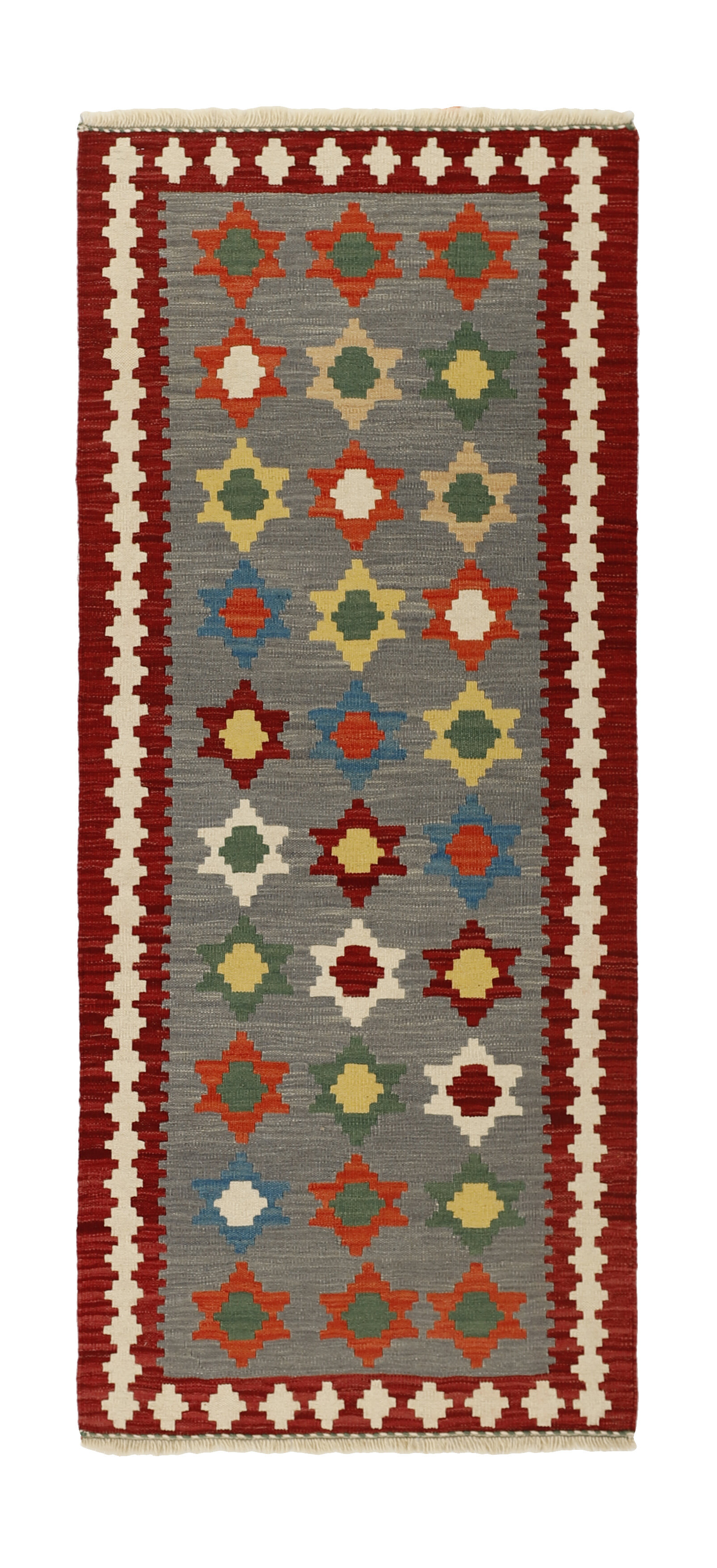 KelimItem no.: 1519228 Size: 85 cm x 203 cmThese Kelims are flat woven rugs, woven by nomads in western Persia. A special weaving technique is used, giving the rug a thinner, flatter surface, with no pile. Kelims are also quicker to produce, compared to common Oriental rugs. The colours are natural and no two rugs are alike. Kelims are produced in several regions and under many names, but the most well known Kelim types are Seneh, Sumak, Fars, and Kelim Gashghai.