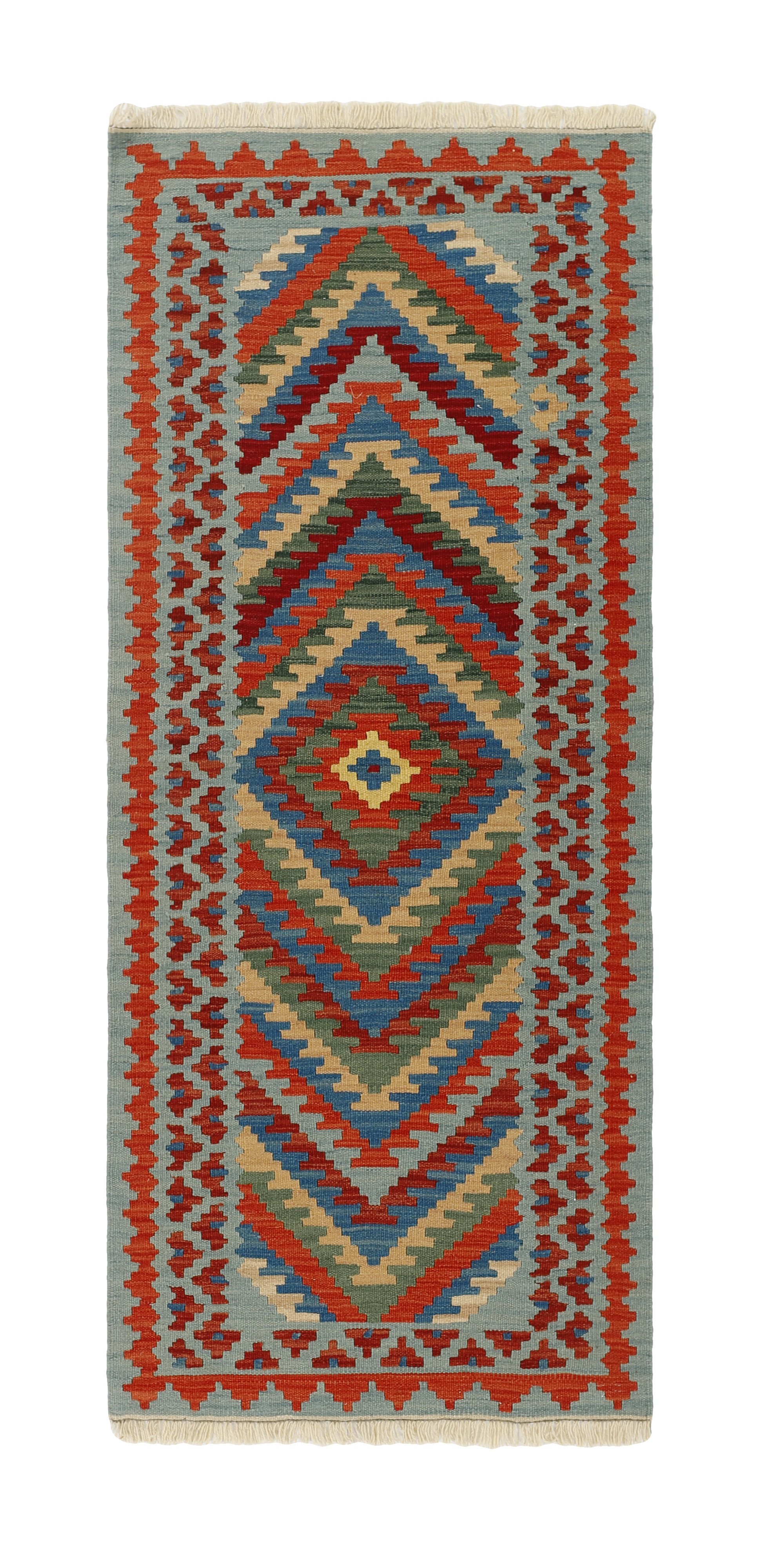 KelimItem no.: 1519240 Size: 83 cm x 199 cmThese Kelims are flat woven rugs, woven by nomads in western Persia. A special weaving technique is used, giving the rug a thinner, flatter surface, with no pile. Kelims are also quicker to produce, compared to common Oriental rugs. The colours are natural and no two rugs are alike. Kelims are produced in several regions and under many names, but the most well known Kelim types are Seneh, Sumak, Fars, and Kelim Gashghai.