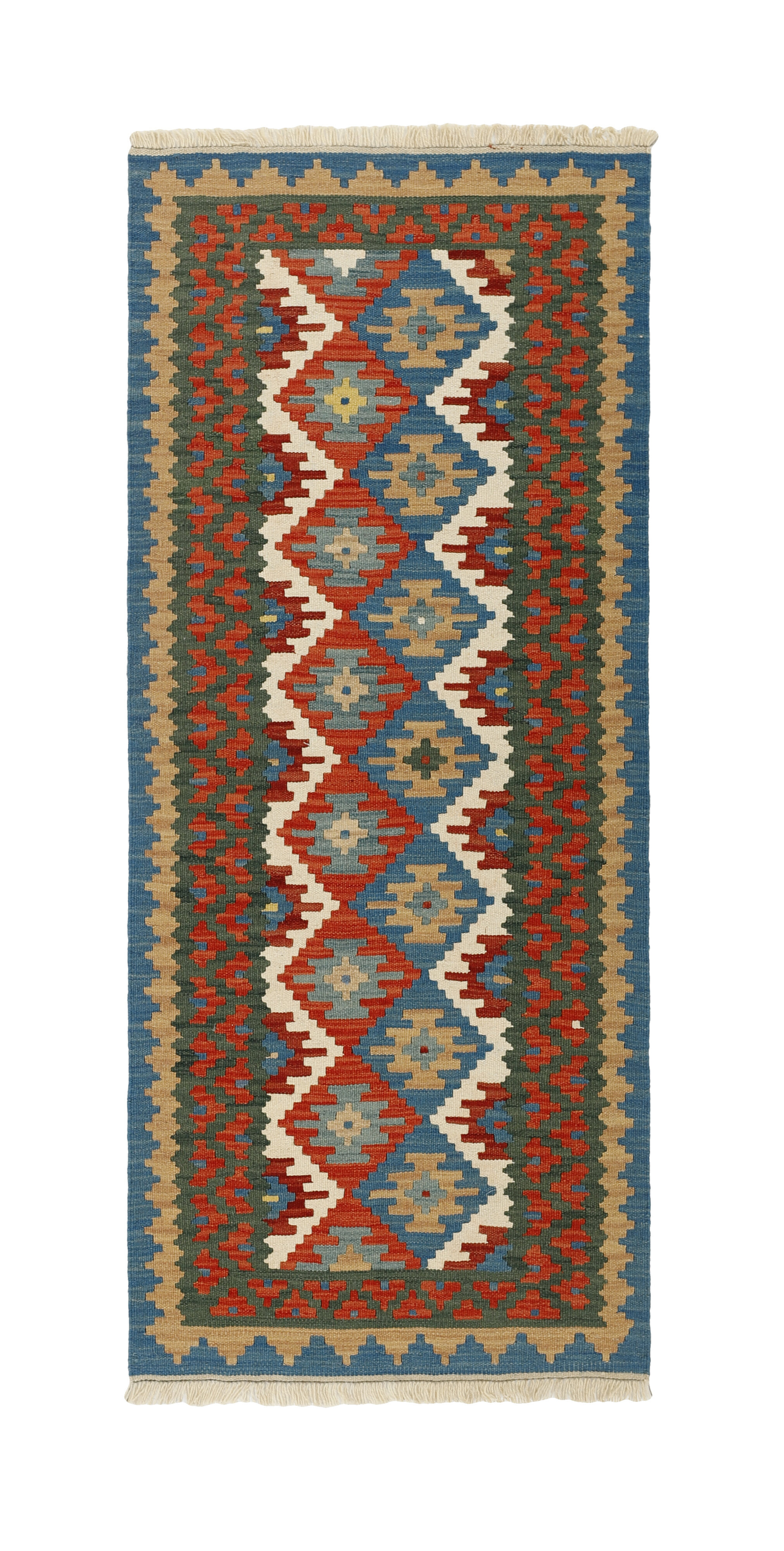 KelimItem no.: 1519241 Size: 81 cm x 195 cmThese Kelims are flat woven rugs, woven by nomads in western Persia. A special weaving technique is used, giving the rug a thinner, flatter surface, with no pile. Kelims are also quicker to produce, compared to common Oriental rugs. The colours are natural and no two rugs are alike. Kelims are produced in several regions and under many names, but the most well known Kelim types are Seneh, Sumak, Fars, and Kelim Gashghai.