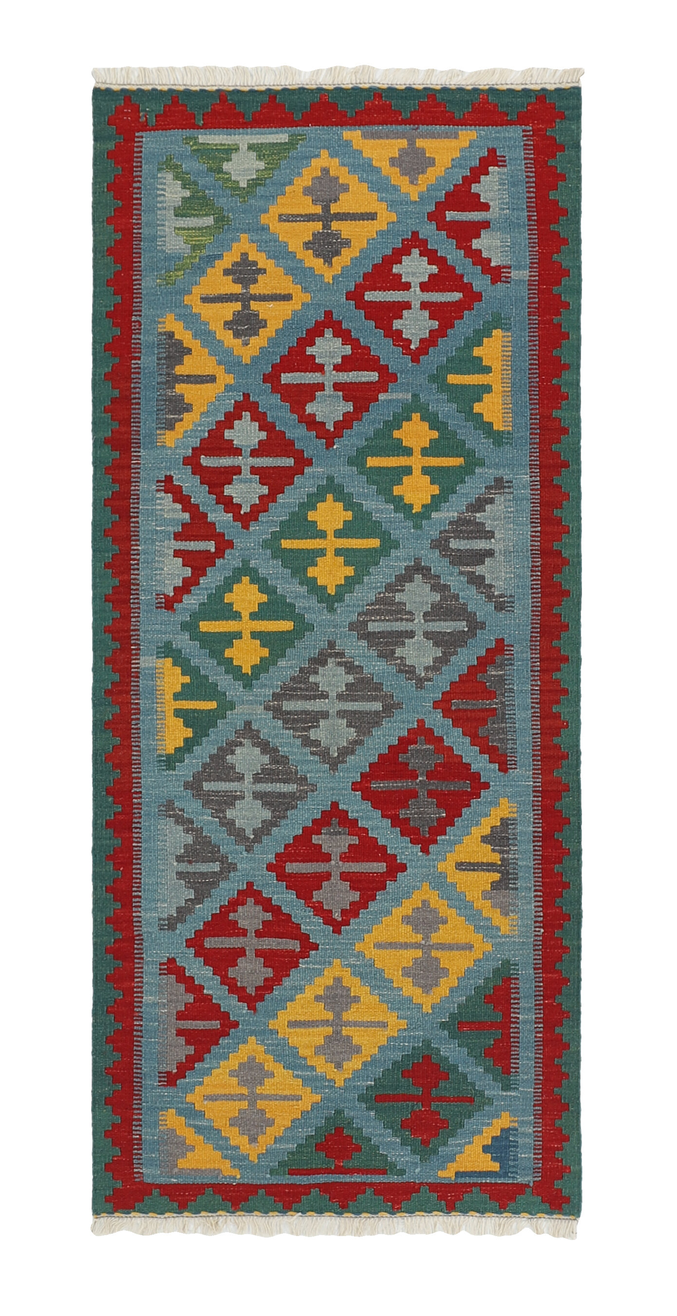 KelimItem no.: 1519243 Size: 81 cm x 198 cmThese Kelims are flat woven rugs, woven by nomads in western Persia. A special weaving technique is used, giving the rug a thinner, flatter surface, with no pile. Kelims are also quicker to produce, compared to common Oriental rugs. The colours are natural and no two rugs are alike. Kelims are produced in several regions and under many names, but the most well known Kelim types are Seneh, Sumak, Fars, and Kelim Gashghai.