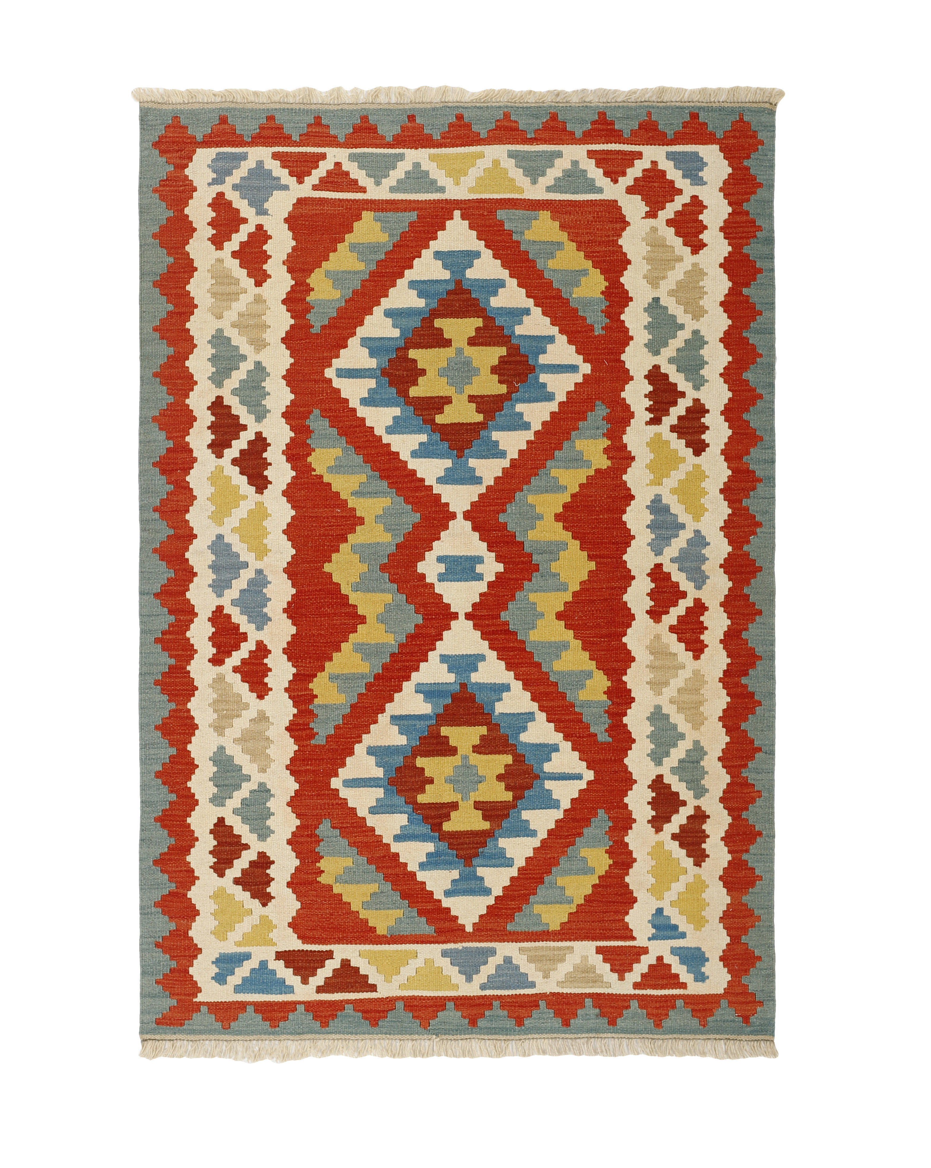 KelimItem no.: 1519254 Size: 123 cm x 179 cmThese Kelims are flat woven rugs, woven by nomads in western Persia. A special weaving technique is used, giving the rug a thinner, flatter surface, with no pile. Kelims are also quicker to produce, compared to common Oriental rugs. The colours are natural and no two rugs are alike. Kelims are produced in several regions and under many names, but the most well known Kelim types are Seneh, Sumak, Fars, and Kelim Gashghai.