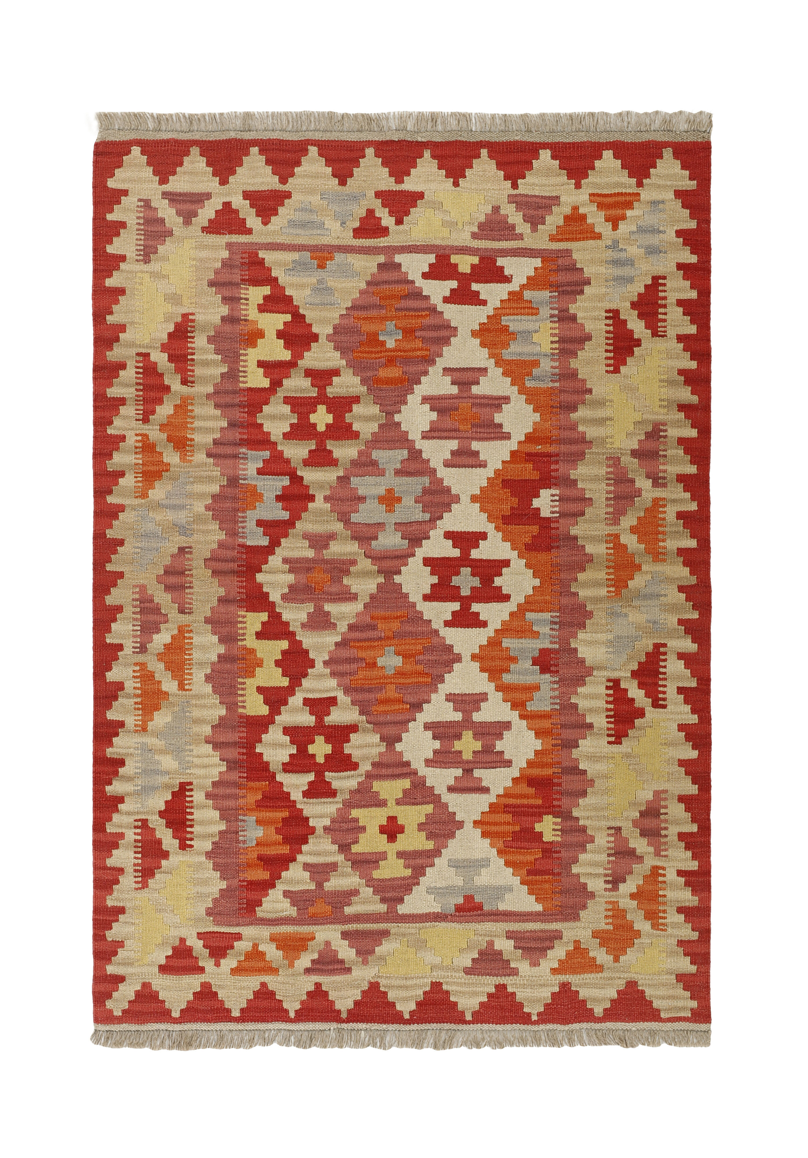 KelimItem no.: 1519256 Size: 127 cm x 187 cmThese Kelims are flat woven rugs, woven by nomads in western Persia. A special weaving technique is used, giving the rug a thinner, flatter surface, with no pile. Kelims are also quicker to produce, compared to common Oriental rugs. The colours are natural and no two rugs are alike. Kelims are produced in several regions and under many names, but the most well known Kelim types are Seneh, Sumak, Fars, and Kelim Gashghai.
