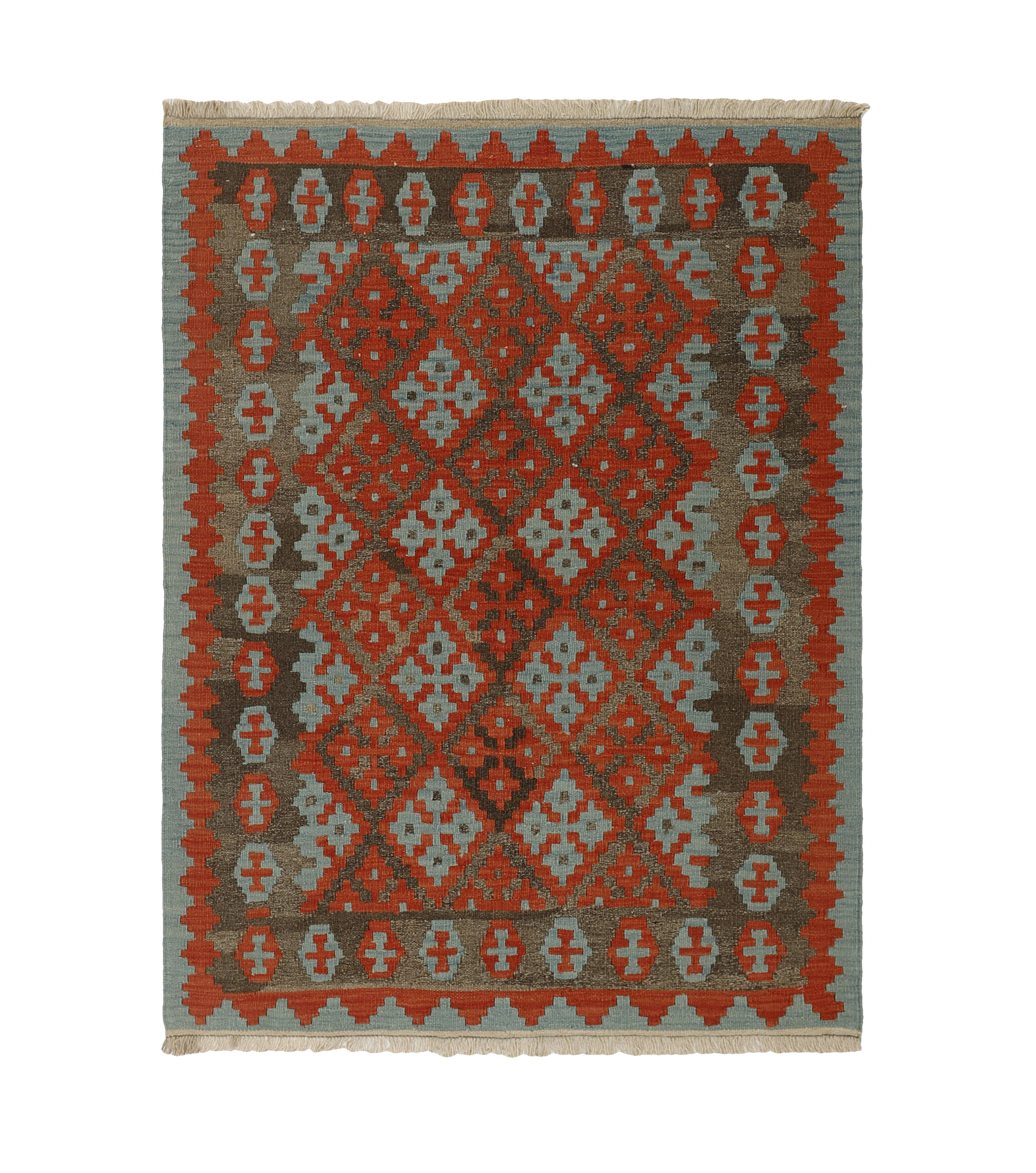KelimItem no.: 1519277 Size: 133 cm x 177 cmThese Kelims are flat woven rugs, woven by nomads in western Persia. A special weaving technique is used, giving the rug a thinner, flatter surface, with no pile. Kelims are also quicker to produce, compared to common Oriental rugs. The colours are natural and no two rugs are alike. Kelims are produced in several regions and under many names, but the most well known Kelim types are Seneh, Sumak, Fars, and Kelim Gashghai.