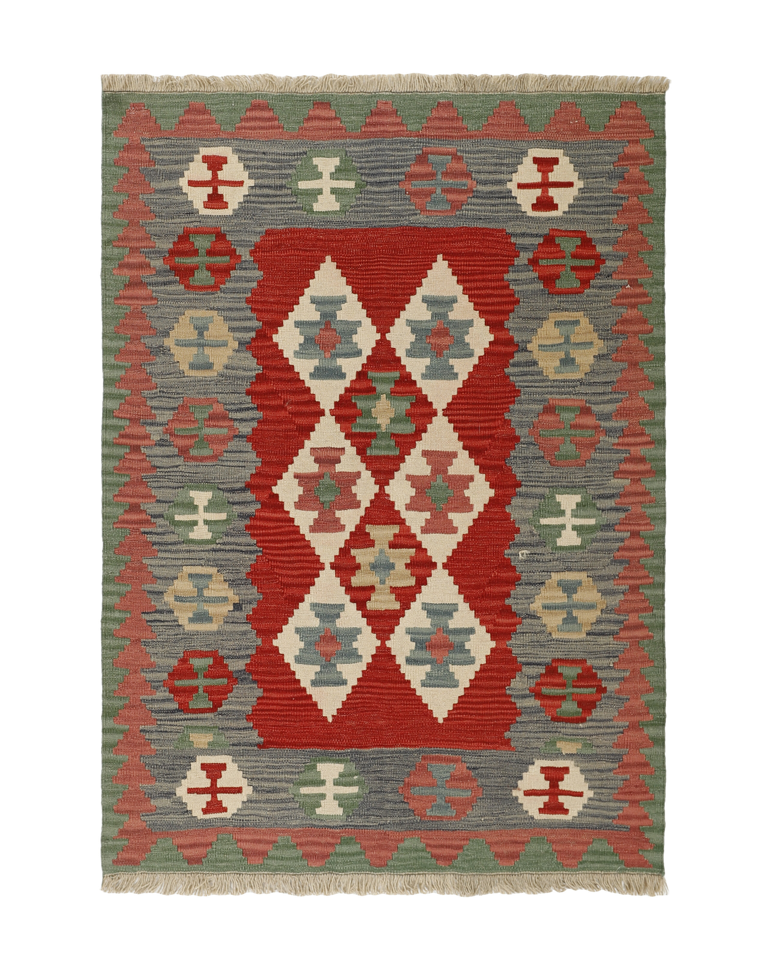 KelimItem no.: 1519279 Size: 127 cm x 180 cmThese Kelims are flat woven rugs, woven by nomads in western Persia. A special weaving technique is used, giving the rug a thinner, flatter surface, with no pile. Kelims are also quicker to produce, compared to common Oriental rugs. The colours are natural and no two rugs are alike. Kelims are produced in several regions and under many names, but the most well known Kelim types are Seneh, Sumak, Fars, and Kelim Gashghai.