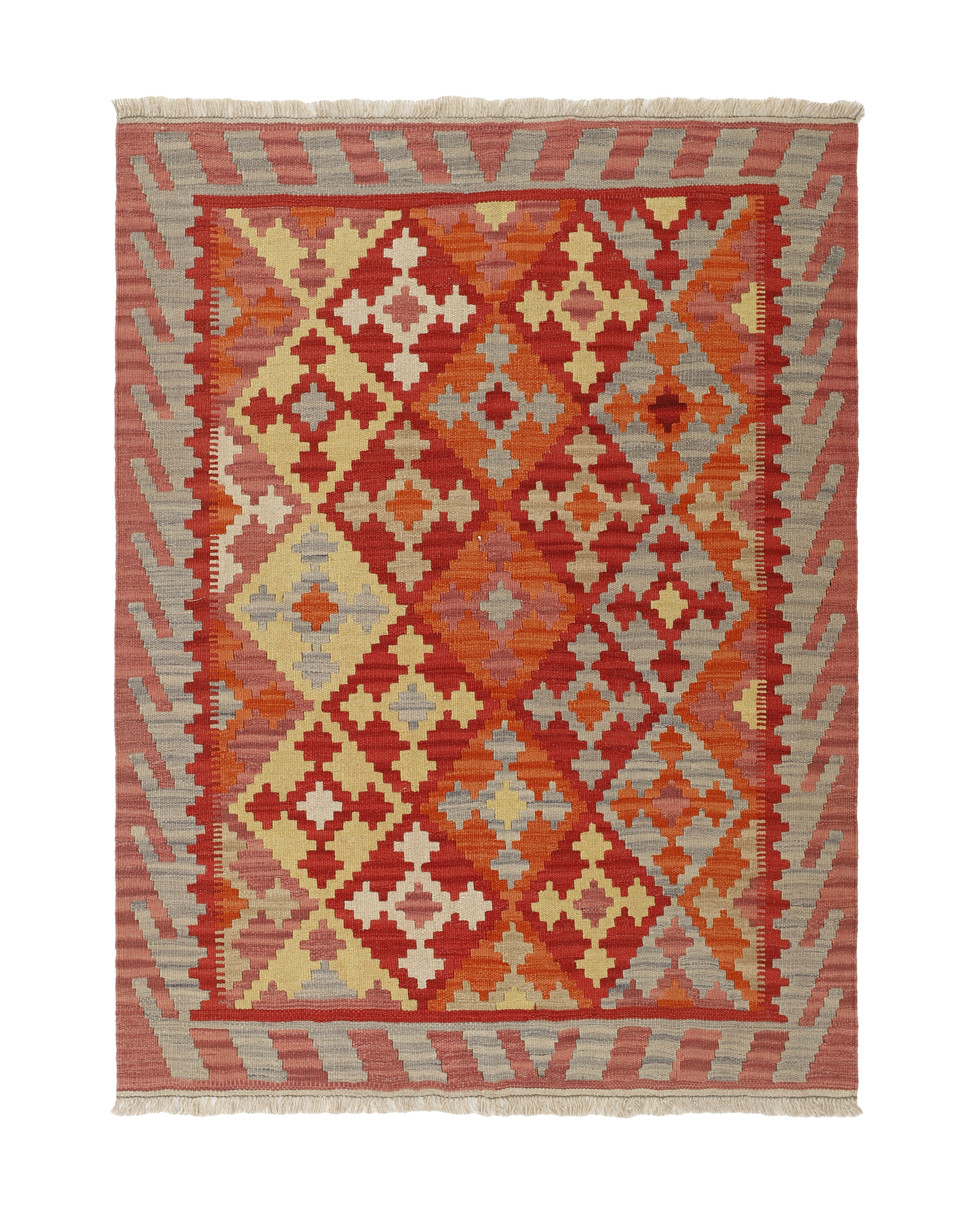KelimItem no.: 1519289 Size: 131 cm x 173 cmThese Kelims are flat woven rugs, woven by nomads in western Persia. A special weaving technique is used, giving the rug a thinner, flatter surface, with no pile. Kelims are also quicker to produce, compared to common Oriental rugs. The colours are natural and no two rugs are alike. Kelims are produced in several regions and under many names, but the most well known Kelim types are Seneh, Sumak, Fars, and Kelim Gashghai.