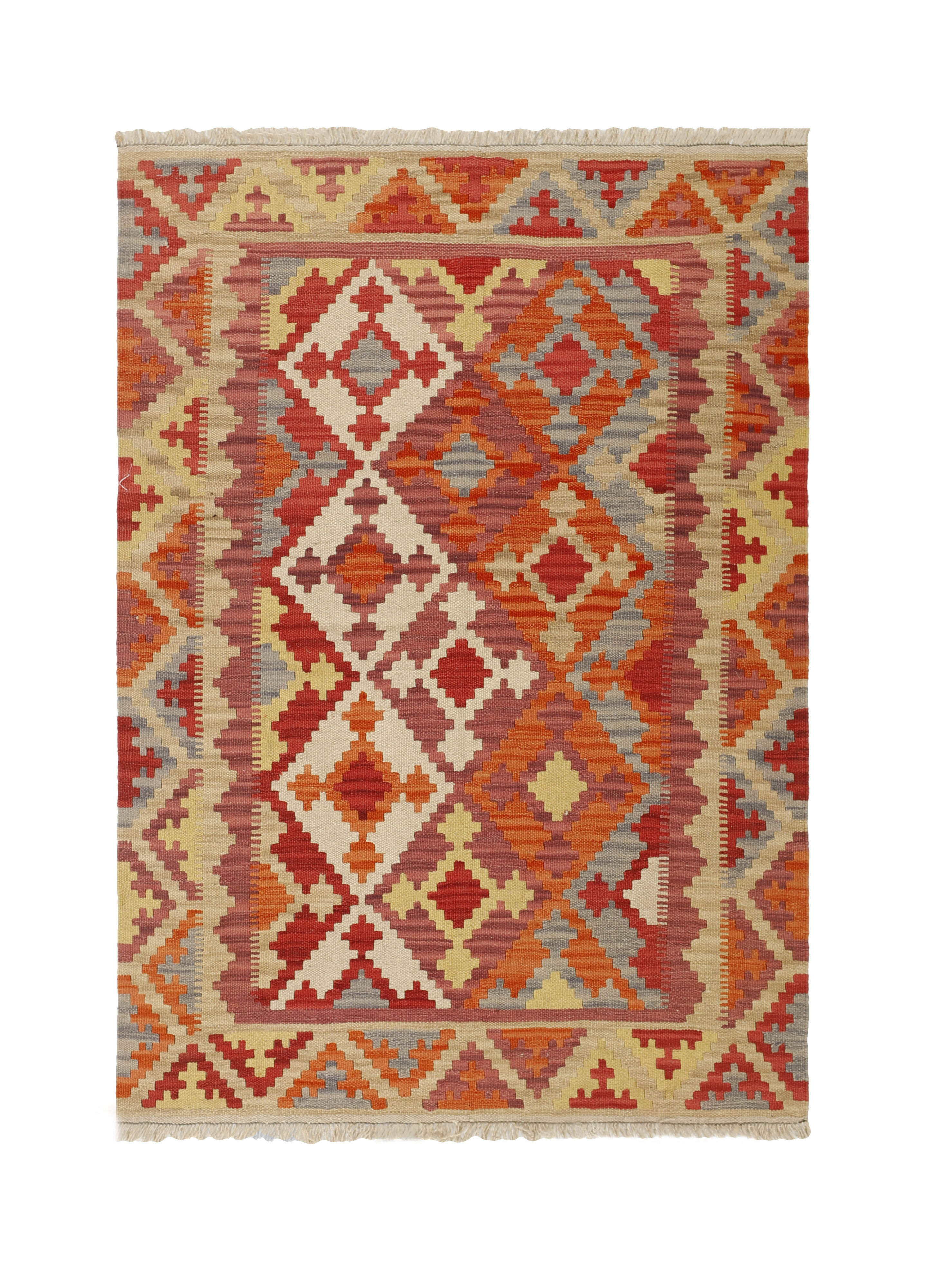KelimItem no.: 1519292 Size: 128 cm x 190 cmThese Kelims are flat woven rugs, woven by nomads in western Persia. A special weaving technique is used, giving the rug a thinner, flatter surface, with no pile. Kelims are also quicker to produce, compared to common Oriental rugs. The colours are natural and no two rugs are alike. Kelims are produced in several regions and under many names, but the most well known Kelim types are Seneh, Sumak, Fars, and Kelim Gashghai.