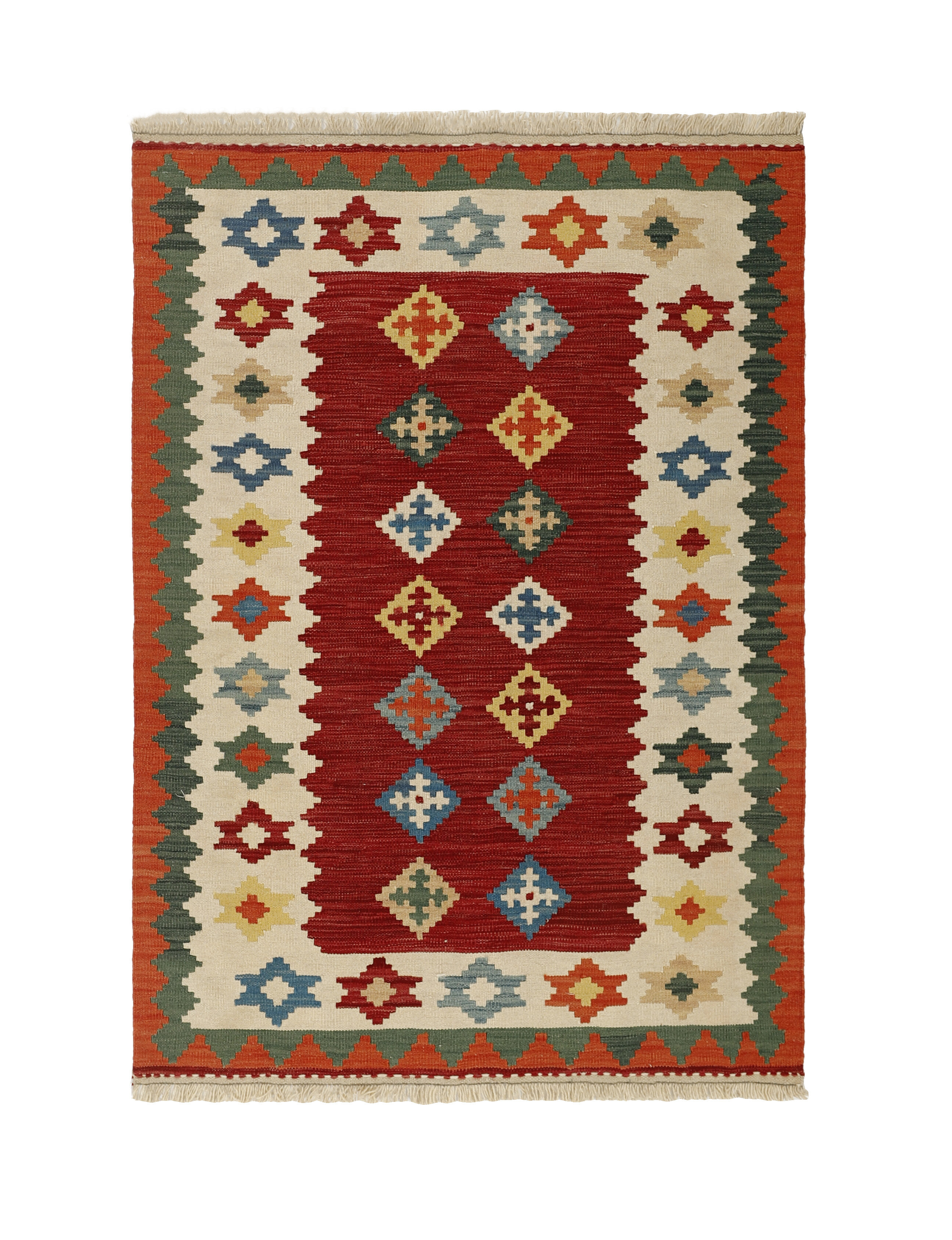 KelimItem no.: 1519299 Size: 123 cm x 179 cmThese Kelims are flat woven rugs, woven by nomads in western Persia. A special weaving technique is used, giving the rug a thinner, flatter surface, with no pile. Kelims are also quicker to produce, compared to common Oriental rugs. The colours are natural and no two rugs are alike. Kelims are produced in several regions and under many names, but the most well known Kelim types are Seneh, Sumak, Fars, and Kelim Gashghai.