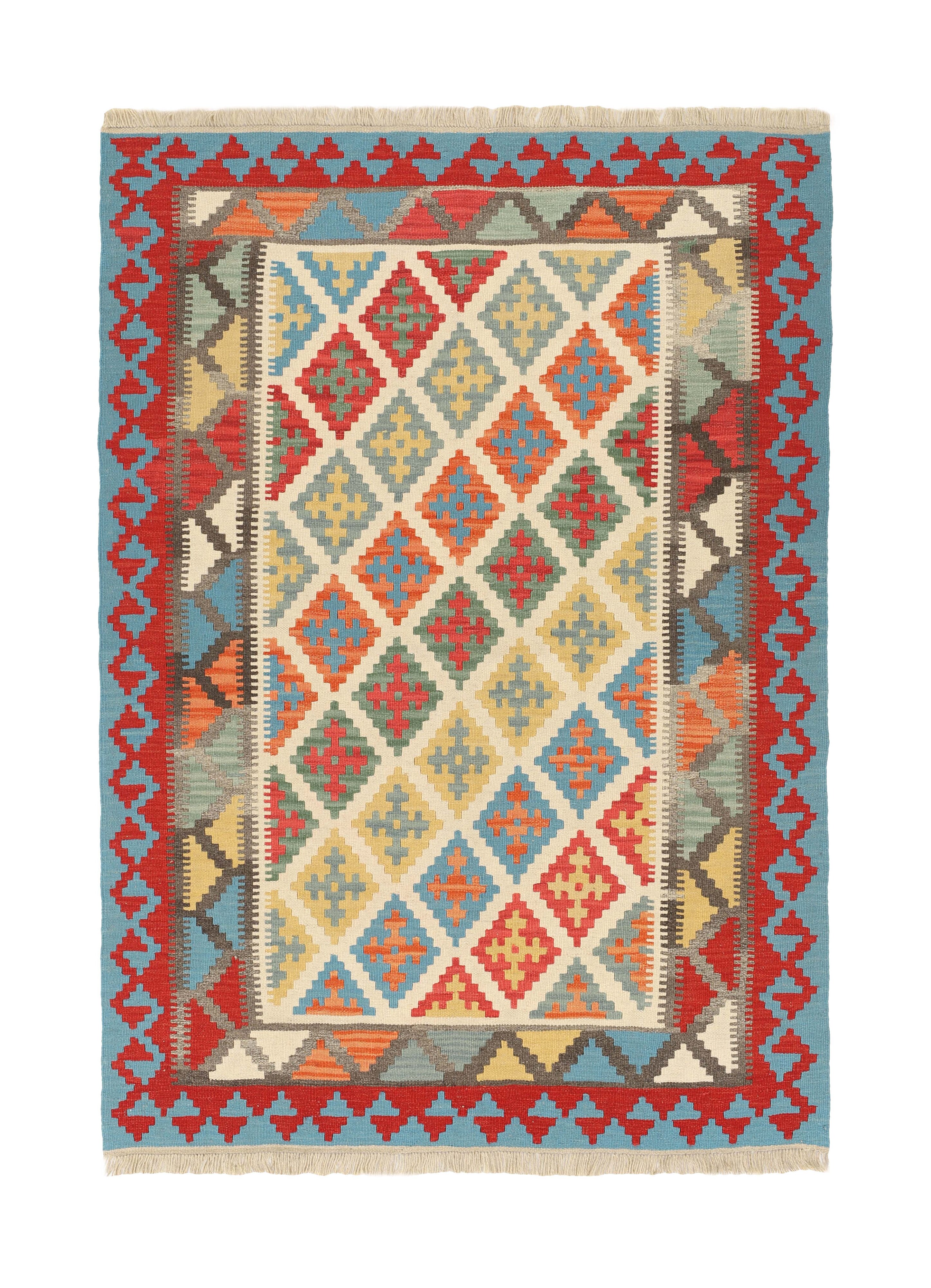 KelimItem no.: 1519353 Size: 150 cm x 210 cmThese Kelims are flat woven rugs, woven by nomads in western Persia. A special weaving technique is used, giving the rug a thinner, flatter surface, with no pile. Kelims are also quicker to produce, compared to common Oriental rugs. The colours are natural and no two rugs are alike. Kelims are produced in several regions and under many names, but the most well known Kelim types are Seneh, Sumak, Fars, and Kelim Gashghai.