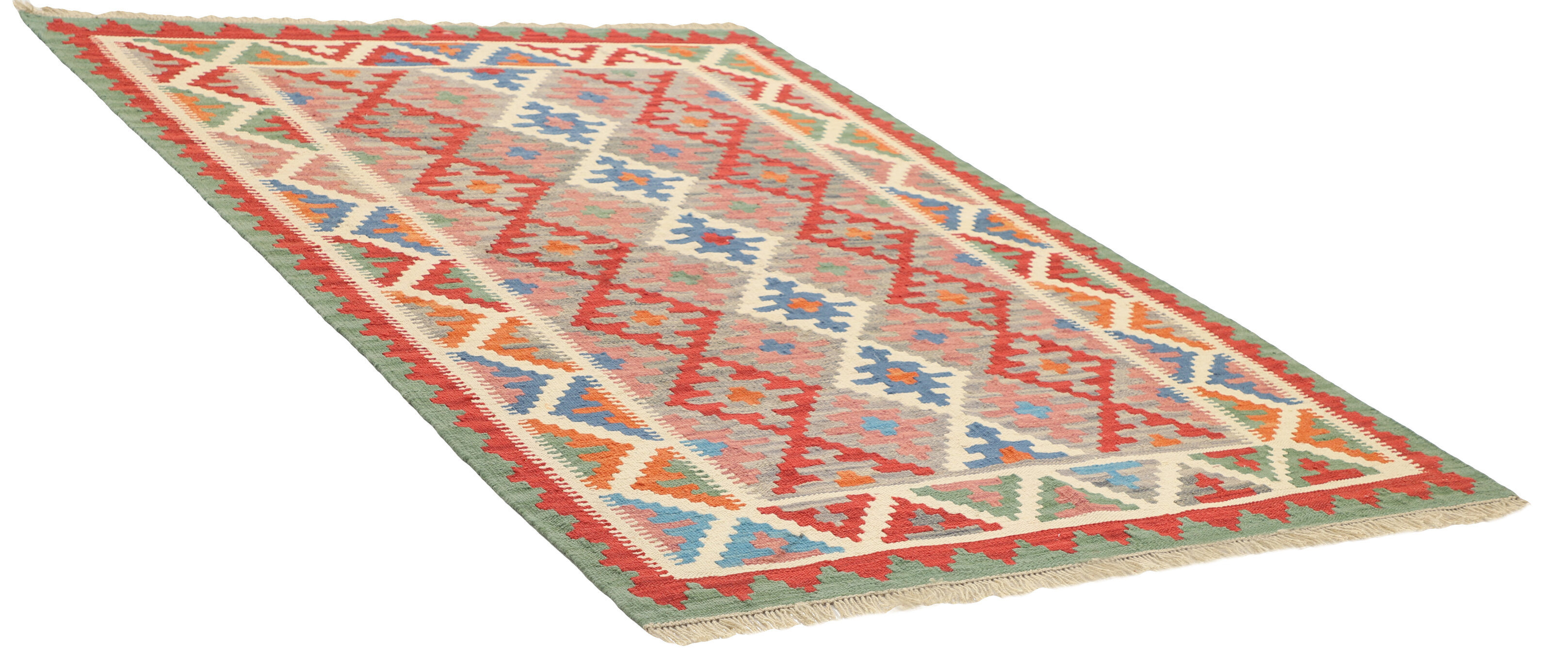 KelimItem no.: 1519354 Size: 150 cm x 200 cmThese Kelims are flat woven rugs, woven by nomads in western Persia. A special weaving technique is used, giving the rug a thinner, flatter surface, with no pile. Kelims are also quicker to produce, compared to common Oriental rugs. The colours are natural and no two rugs are alike. Kelims are produced in several regions and under many names, but the most well known Kelim types are Seneh, Sumak, Fars, and Kelim Gashghai.