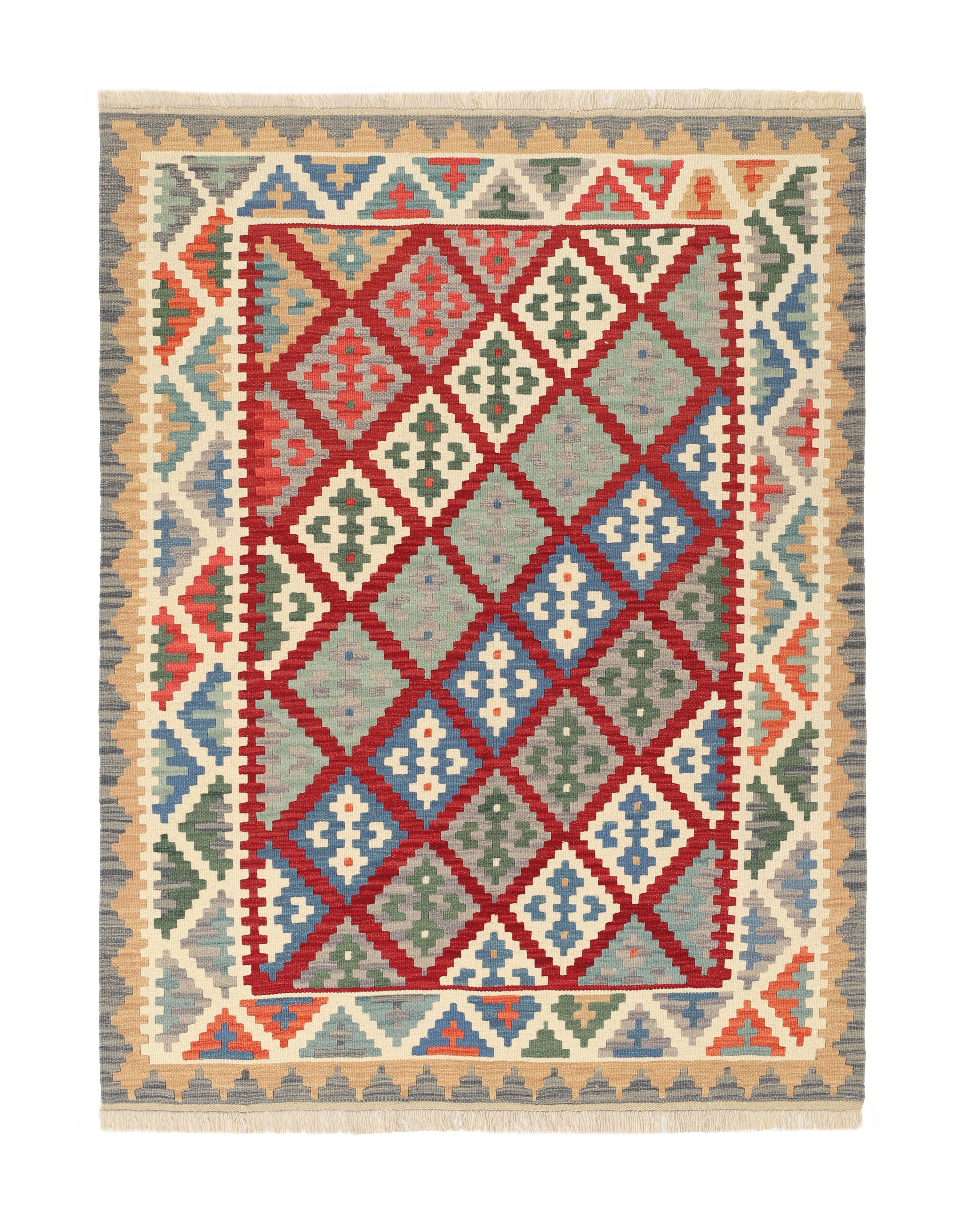 KelimItem no.: 1519357 Size: 150 cm x 195 cmThese Kelims are flat woven rugs, woven by nomads in western Persia. A special weaving technique is used, giving the rug a thinner, flatter surface, with no pile. Kelims are also quicker to produce, compared to common Oriental rugs. The colours are natural and no two rugs are alike. Kelims are produced in several regions and under many names, but the most well known Kelim types are Seneh, Sumak, Fars, and Kelim Gashghai.