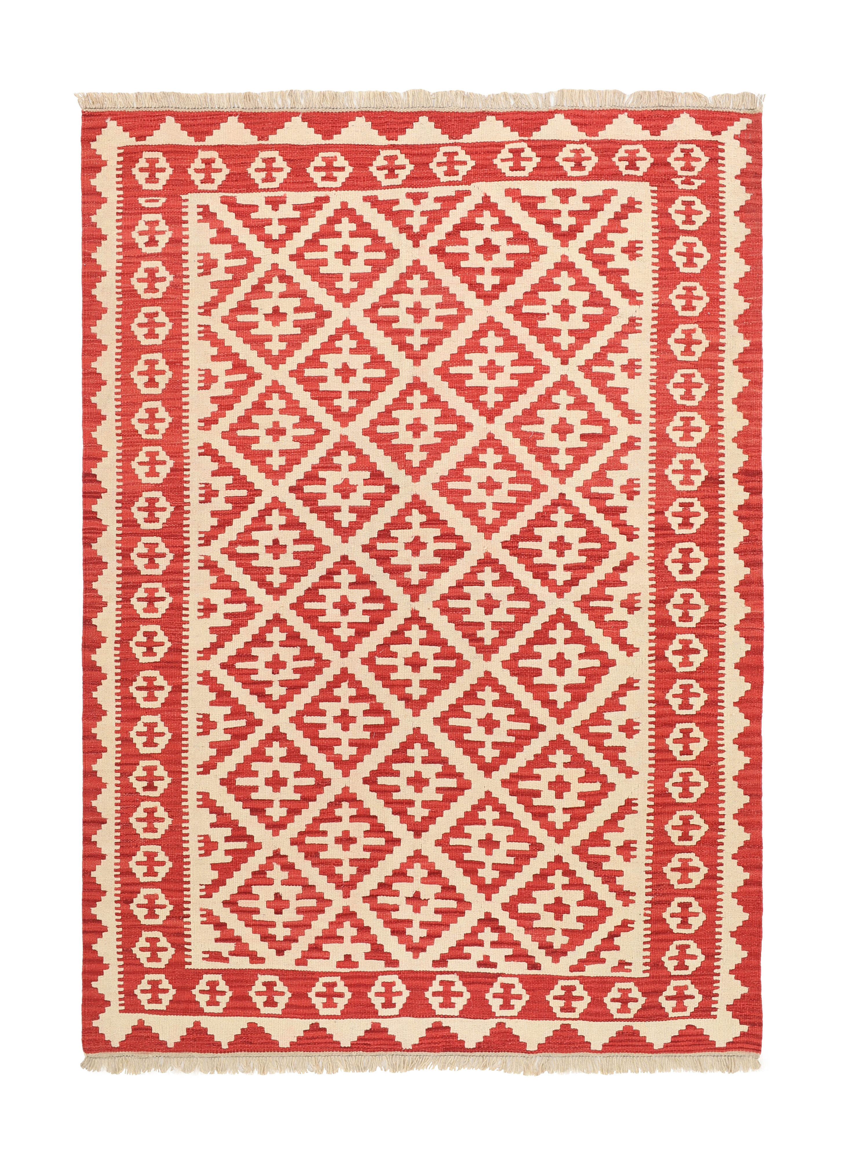 KelimItem no.: 1519465 Size: 166 cm x 230 cmThese Kelims are flat woven rugs, woven by nomads in western Persia. A special weaving technique is used, giving the rug a thinner, flatter surface, with no pile. Kelims are also quicker to produce, compared to common Oriental rugs. The colours are natural and no two rugs are alike. Kelims are produced in several regions and under many names, but the most well known Kelim types are Seneh, Sumak, Fars, and Kelim Gashghai.