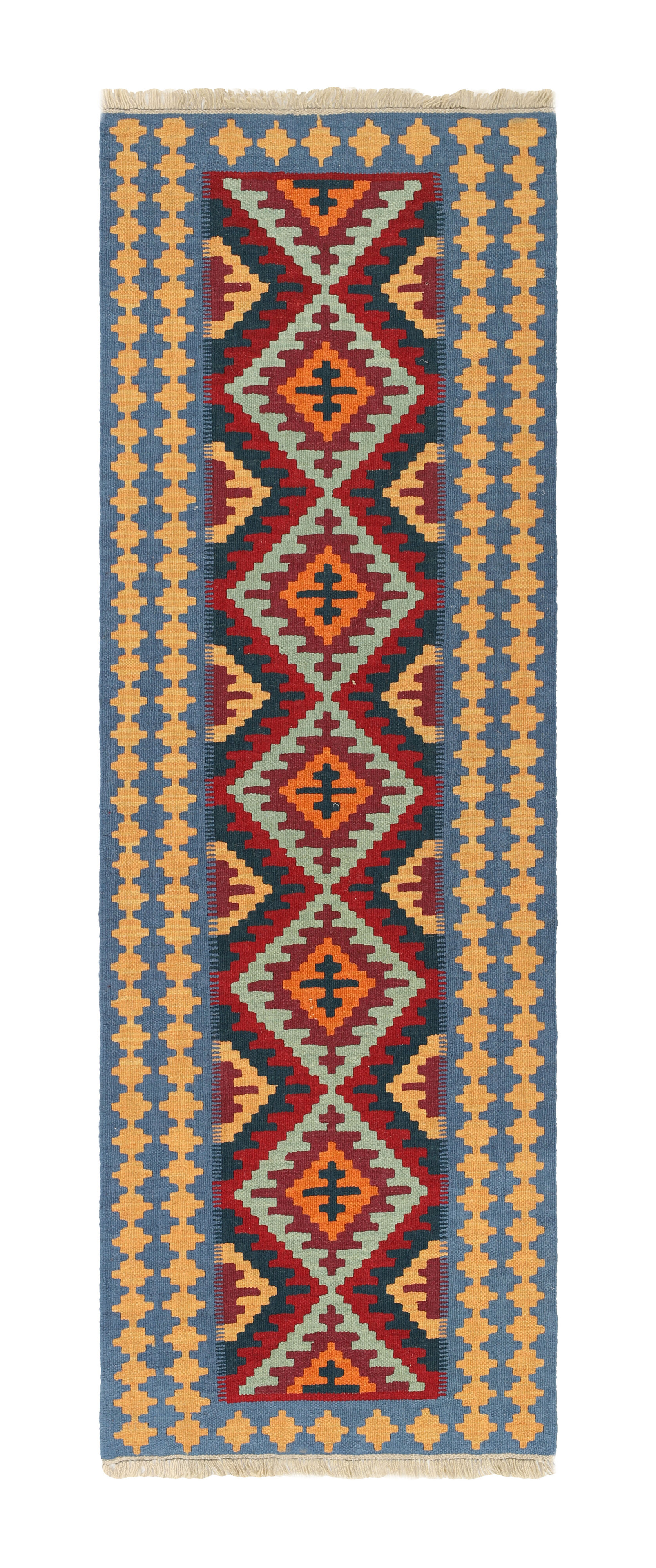 KelimItem no.: 1519480 Size: 83 cm x 246 cmThese Kelims are flat woven rugs, woven by nomads in western Persia. A special weaving technique is used, giving the rug a thinner, flatter surface, with no pile. Kelims are also quicker to produce, compared to common Oriental rugs. The colours are natural and no two rugs are alike. Kelims are produced in several regions and under many names, but the most well known Kelim types are Seneh, Sumak, Fars, and Kelim Gashghai.