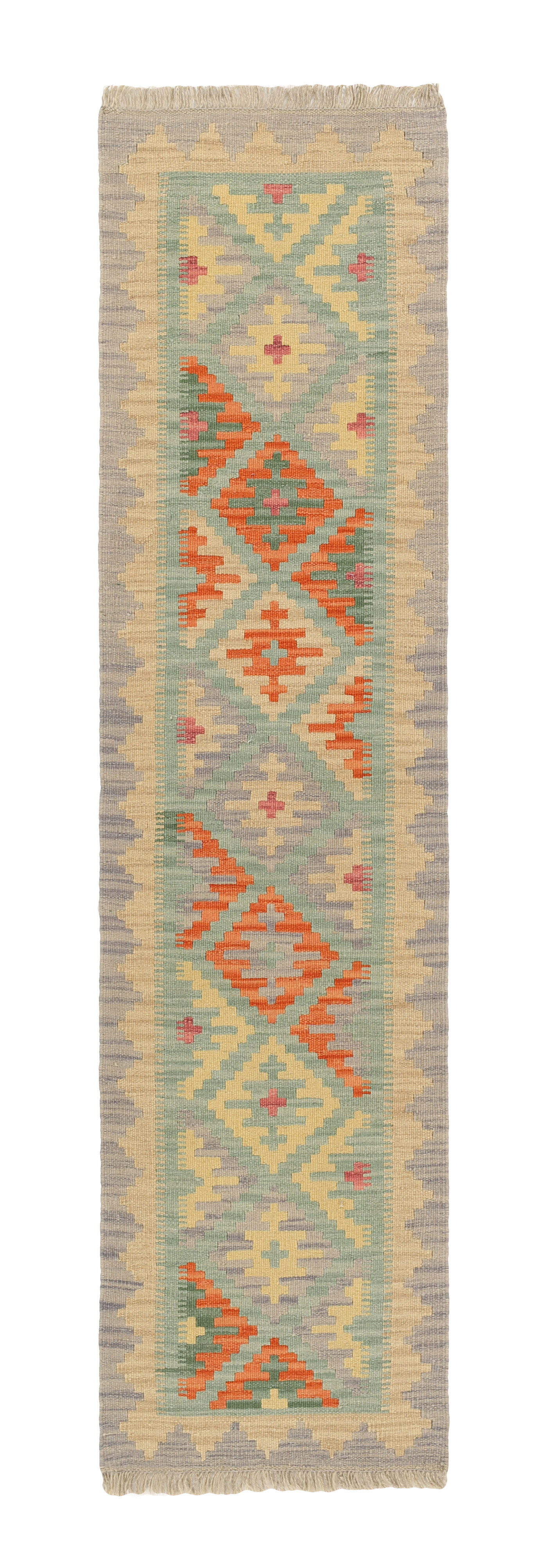KelimItem no.: 1519483 Size: 60 cm x 240 cmThese Kelims are flat woven rugs, woven by nomads in western Persia. A special weaving technique is used, giving the rug a thinner, flatter surface, with no pile. Kelims are also quicker to produce, compared to common Oriental rugs. The colours are natural and no two rugs are alike. Kelims are produced in several regions and under many names, but the most well known Kelim types are Seneh, Sumak, Fars, and Kelim Gashghai.