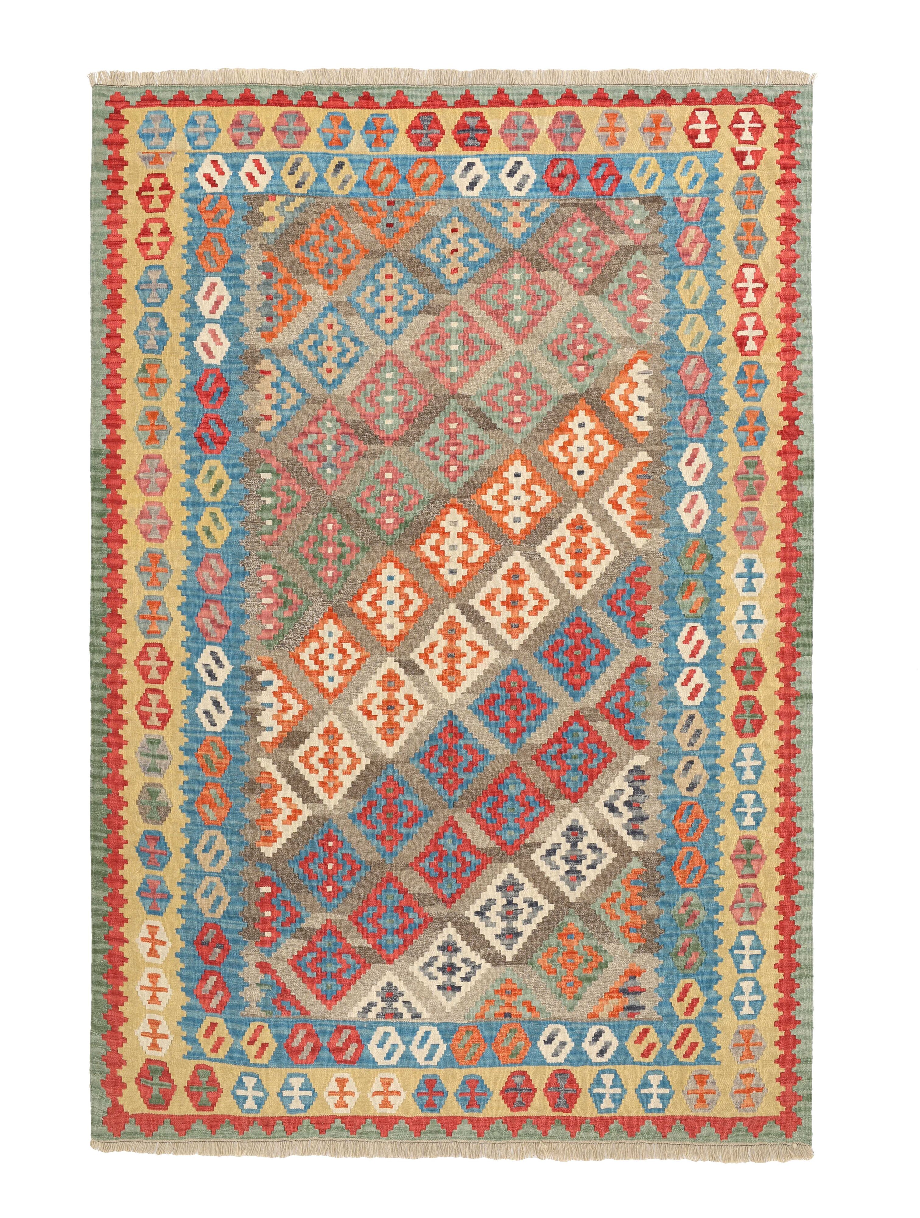 KelimItem no.: 1519488 Size: 209 cm x 297 cmThese Kelims are flat woven rugs, woven by nomads in western Persia. A special weaving technique is used, giving the rug a thinner, flatter surface, with no pile. Kelims are also quicker to produce, compared to common Oriental rugs. The colours are natural and no two rugs are alike. Kelims are produced in several regions and under many names, but the most well known Kelim types are Seneh, Sumak, Fars, and Kelim Gashghai.