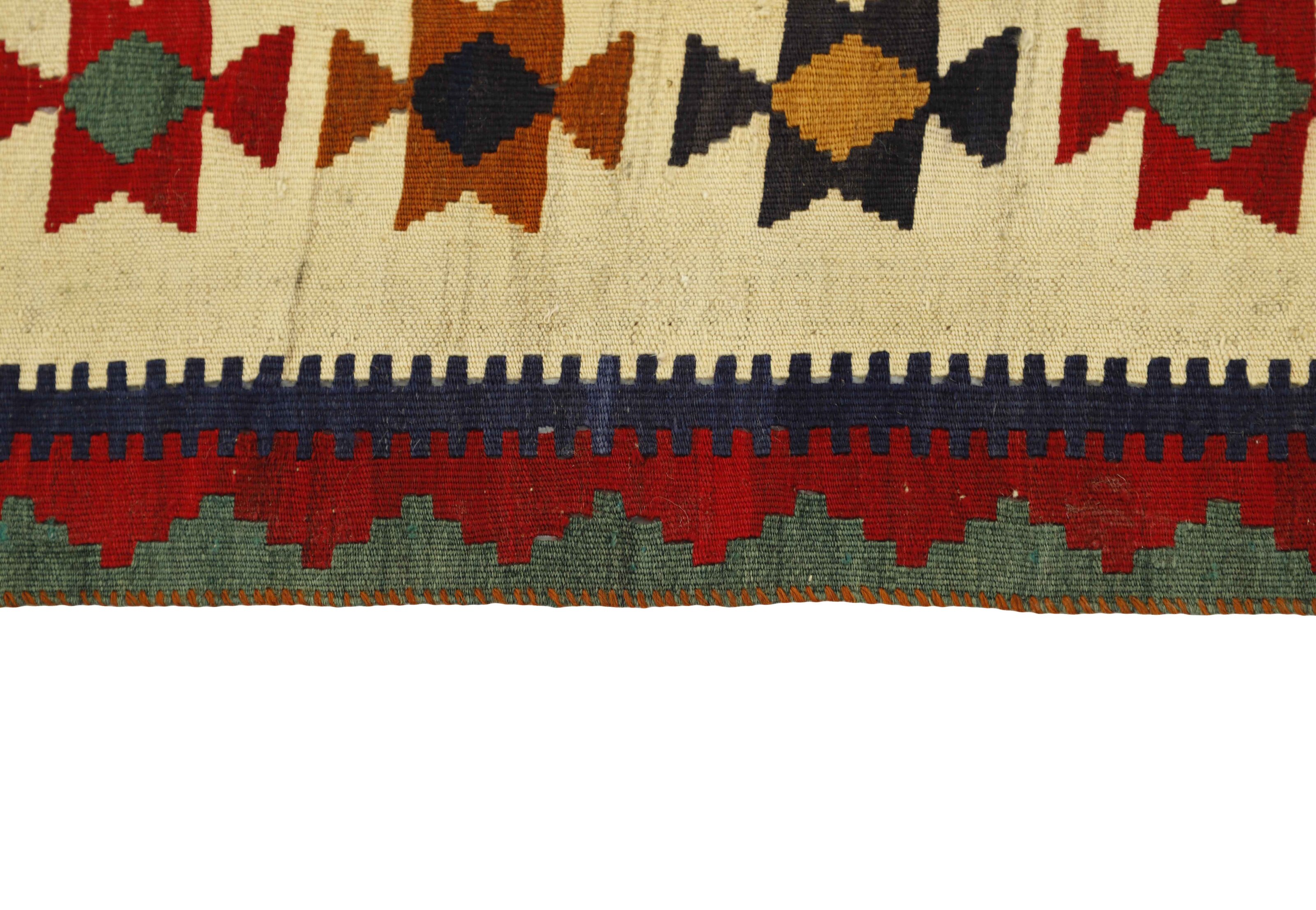 Kelim OldItem no.: 1486841 Size: 148 cm x 238 cmPersian Kelim Old are often oblong, and were originally used in tents by the nomads. Kelim rugs are often placed on top of other rugs as insulation. The rugs are often up to 50 years old, sometimes more than 80 years. The nomads knot or weave the rugs they need themselves, and use them for many different purposes, such as saddlebags for camels and donkeys, but they are mostly used for motorbikes, storing clothes, for sitting on, and as sleeping blankets.