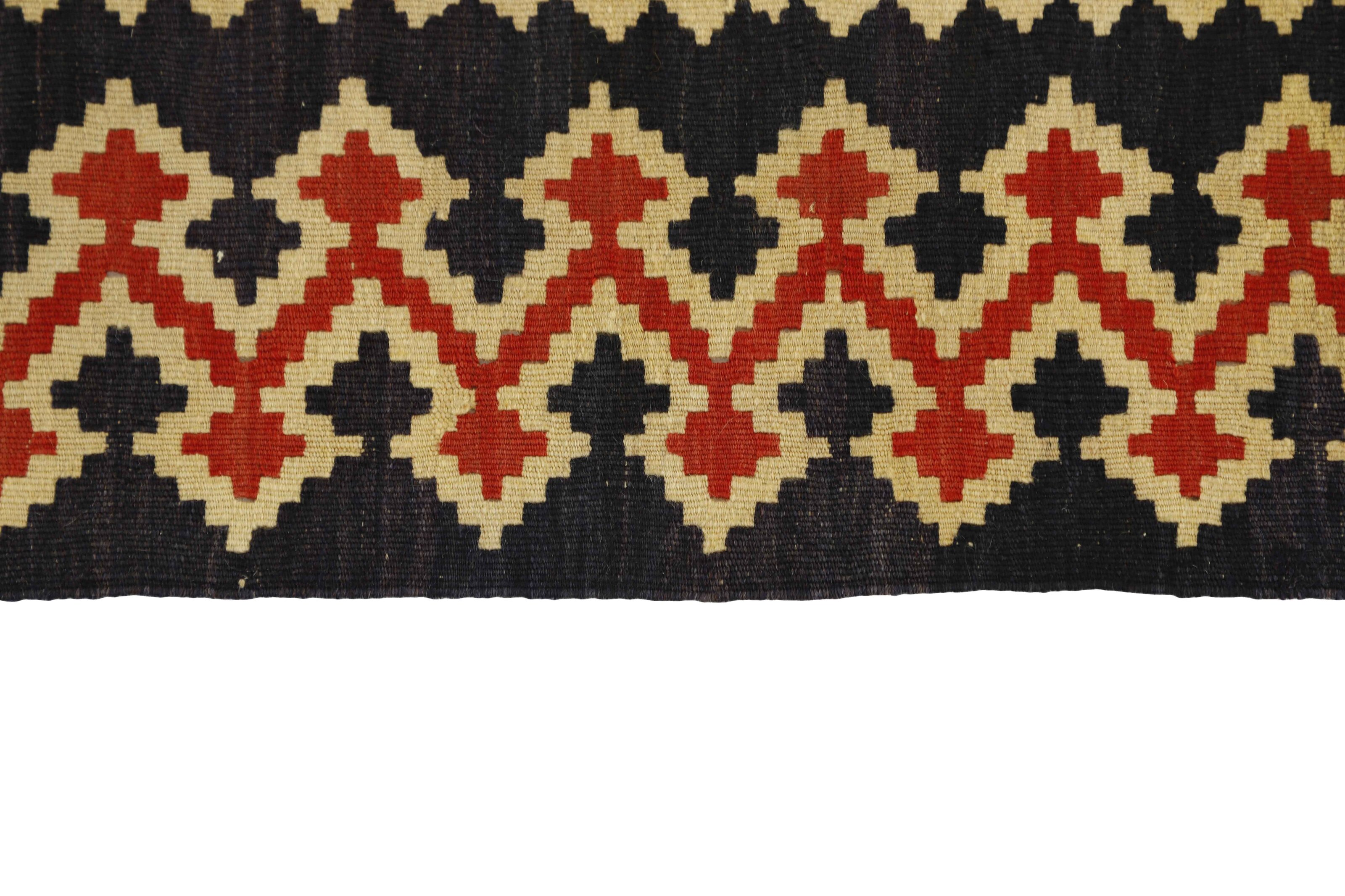 Kelim OldItem no.: 1486855 Size: 160 cm x 237 cmPersian Kelim Old are often oblong, and were originally used in tents by the nomads. Kelim rugs are often placed on top of other rugs as insulation. The rugs are often up to 50 years old, sometimes more than 80 years. The nomads knot or weave the rugs they need themselves, and use them for many different purposes, such as saddlebags for camels and donkeys, but they are mostly used for motorbikes, storing clothes, for sitting on, and as sleeping blankets.