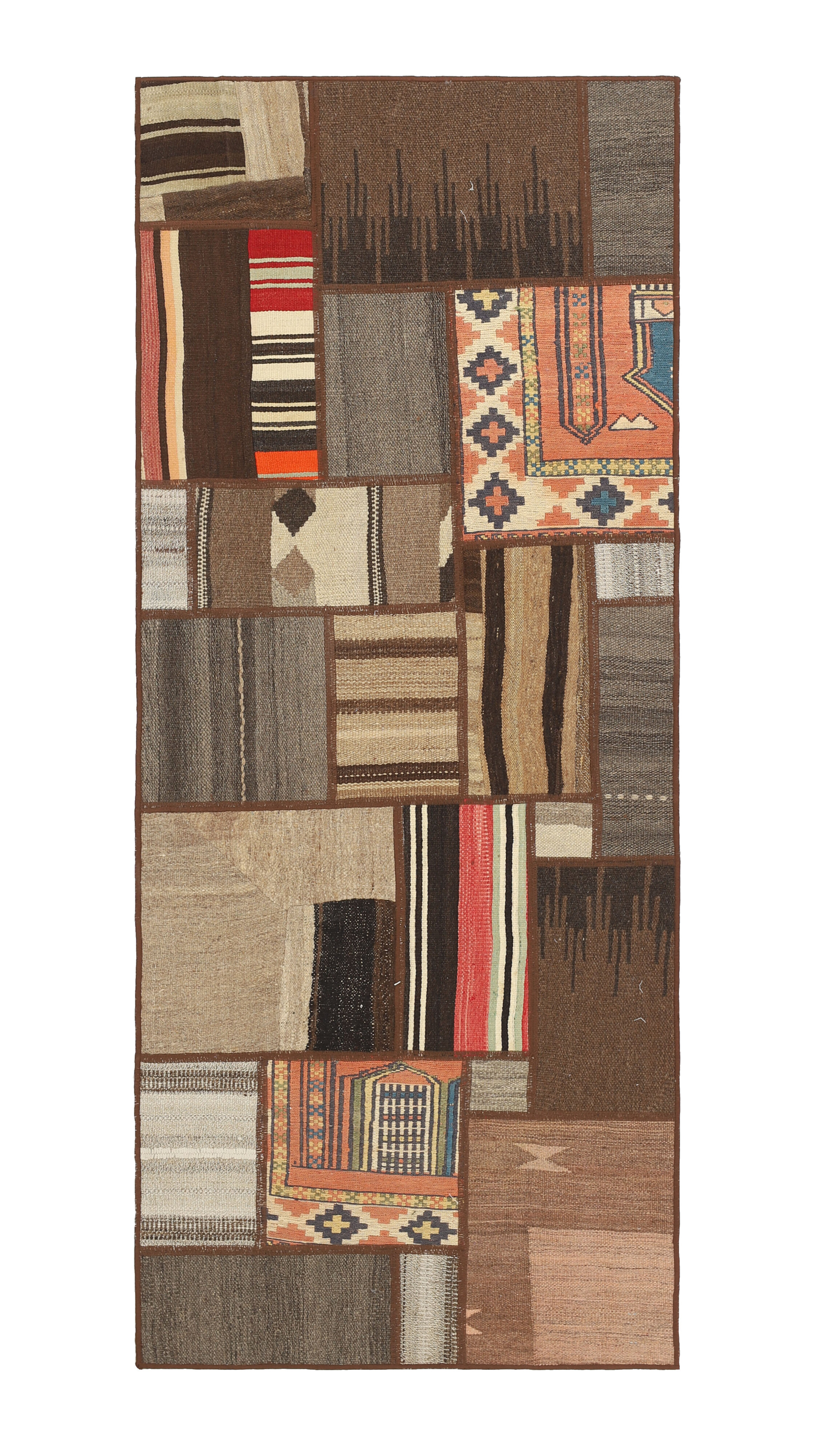 Tekkeh Kelims are produced from older Persian Kelims that have been cut into smaller pieces, sewn together, and given a back cover. Tekkeh means piece, so Tekkeh Kelim means a patchwork rug where many pieces have been sewn together. Tekkeh Kelims are available in many sizes and have thoroughly unique patterns. The rugs are produced from 20-50 year old Kelims. Kelim rugs are hand woven rugs that are made using a special weaving technique, giving the rugs a thinner, felt-like quality. Tekkeh Kelim is produced of older Persian kelim, cut into smaller pieces, sown together and with a backside applied. Tekkeh is the Persian name for pieces, and Tekkeh kelim is an expression for a patchwork rug, where several pieces are sown together. Tekkeh Kelim is available in many sizes and all pieces has unique patterns. used a special weaving technique, that gives the rug a thinner and felt like quality.