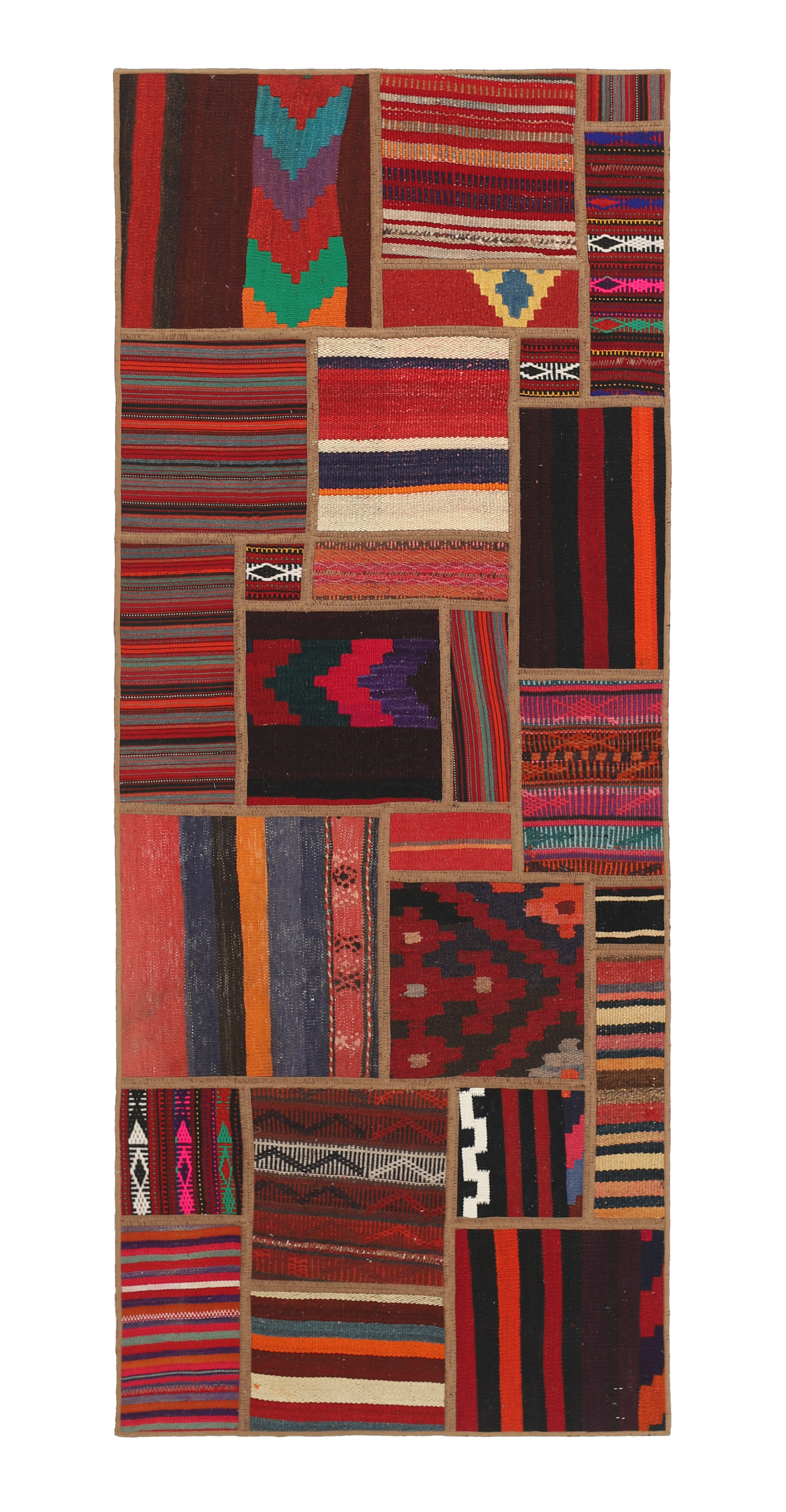 Tekkeh Kelims are produced from older Persian Kelims that have been cut into smaller pieces, sewn together, and given a back cover. Tekkeh means piece, so Tekkeh Kelim means a patchwork rug where many pieces have been sewn together. Tekkeh Kelims are available in many sizes and have thoroughly unique patterns. The rugs are produced from 20-50 year old Kelims. Kelim rugs are hand woven rugs that are made using a special weaving technique, giving the rugs a thinner, felt-like quality. Tekkeh Kelim is produced of older Persian kelim, cut into smaller pieces, sown together and with a backside applied. Tekkeh is the Persian name for pieces, and Tekkeh kelim is an expression for a patchwork rug, where several pieces are sown together. Tekkeh Kelim is available in many sizes and all pieces has unique patterns. used a special weaving technique, that gives the rug a thinner and felt like quality.