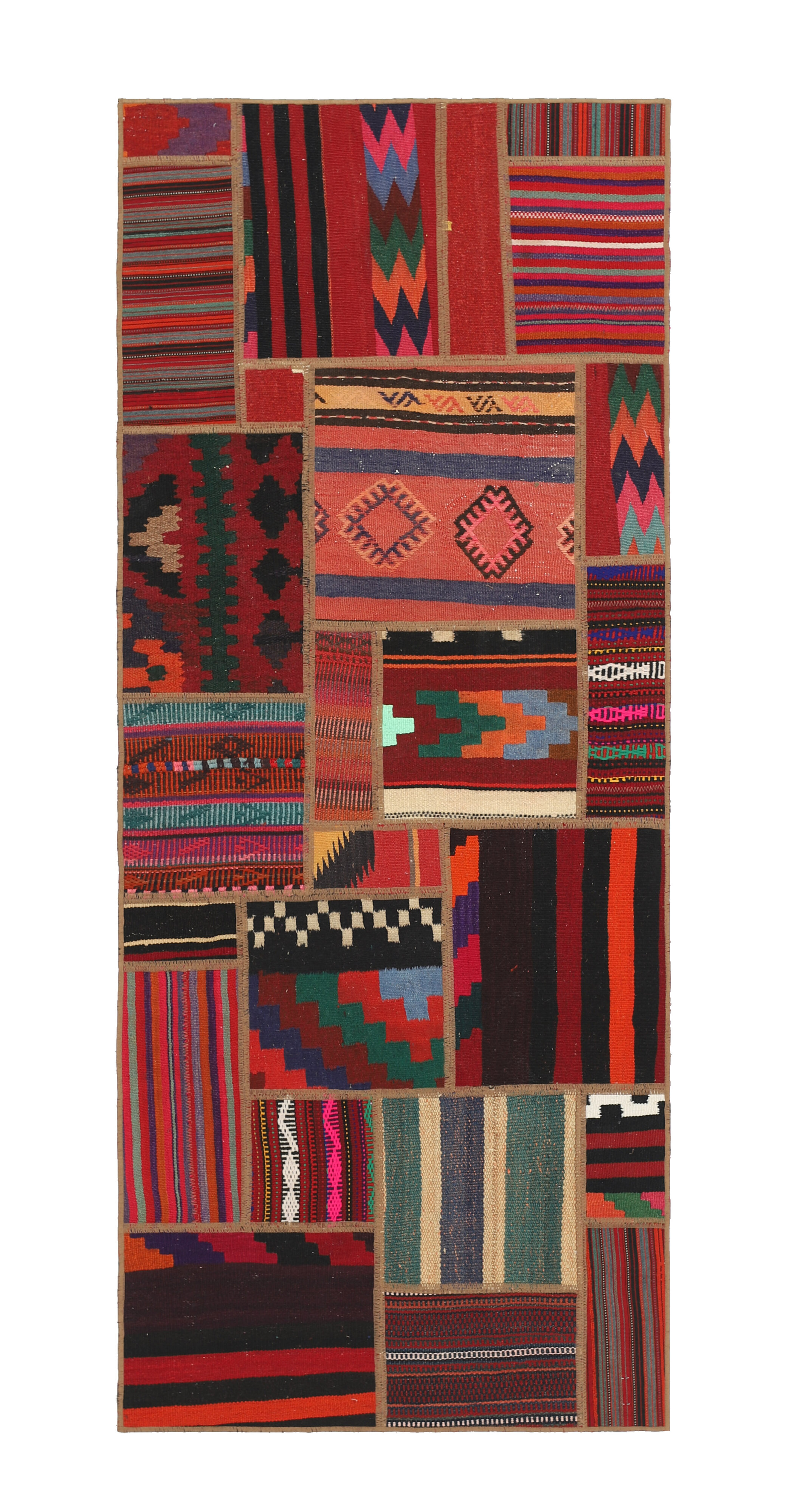 Tekkeh Kelims are produced from older Persian Kelims that have been cut into smaller pieces, sewn together, and given a back cover. Tekkeh means piece, so Tekkeh Kelim means a patchwork rug where many pieces have been sewn together. Tekkeh Kelims are available in many sizes and have thoroughly unique patterns. The rugs are produced from 20-50 year old Kelims. Kelim rugs are hand woven rugs that are made using a special weaving technique, giving the rugs a thinner, felt-like quality. Tekkeh Kelim is produced of older Persian kelim, cut into smaller pieces, sown together and with a backside applied. Tekkeh is the Persian name for pieces, and Tekkeh kelim is an expression for a patchwork rug, where several pieces are sown together. Tekkeh Kelim is available in many sizes and all pieces has unique patterns. used a special weaving technique, that gives the rug a thinner and felt like quality.