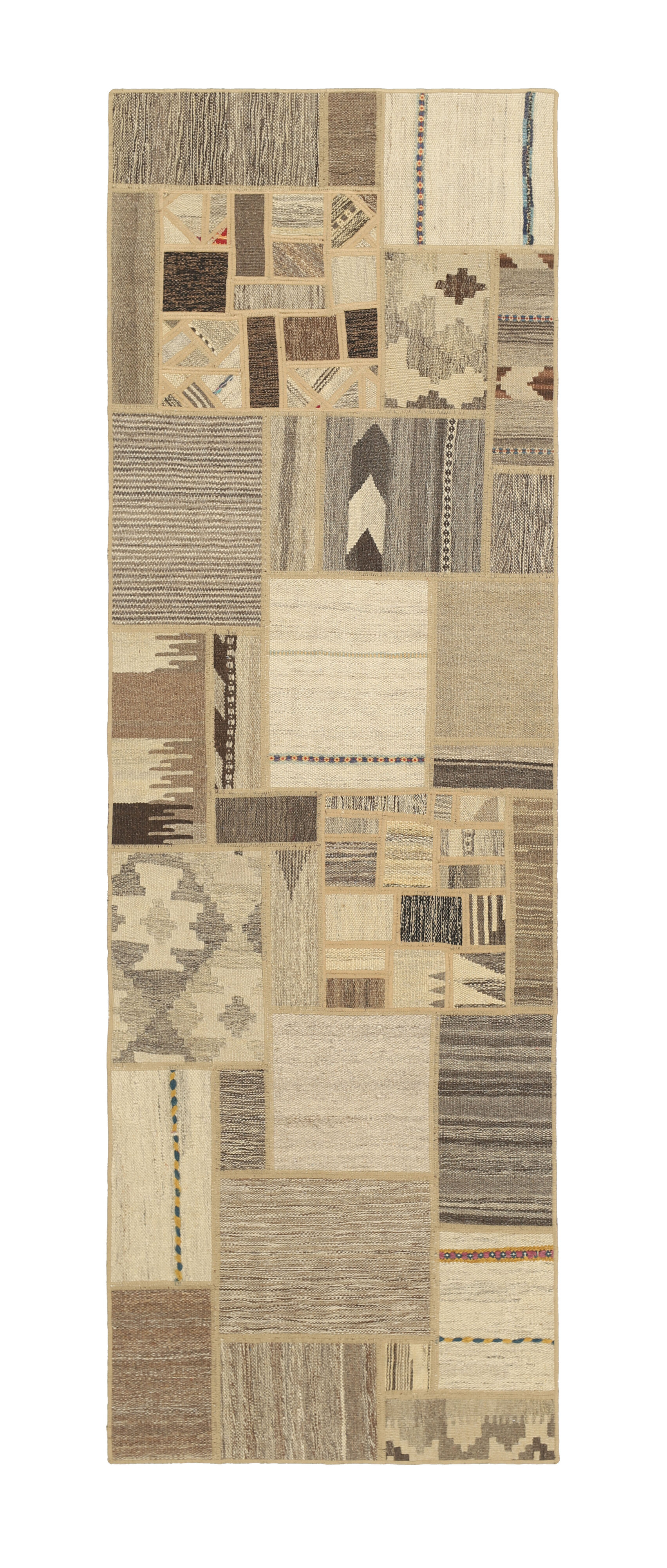 Tekkeh Kelims are produced from older Persian Kelims that have been cut into smaller pieces, sewn together, and given a back cover. Tekkeh means piece, so Tekkeh Kelim means a patchwork rug where many pieces have been sewn together. Tekkeh Kelims are available in many sizes and have thoroughly unique patterns. The rugs are produced from 20-50 year old Kelims. Kelim rugs are hand woven rugs that are made using a special weaving technique, giving the rugs a thinner, felt-like quality. Tekkeh Kelim is produced of older Persian kelim, cut into smaller pieces, sown together and with a backside applied. Tekkeh is the Persian name for pieces, and Tekkeh kelim is an expression for a patchwork rug, where several pieces are sown together. Tekkeh Kelim is available in many sizes and all pieces has unique patterns. used a special weaving technique, that gives the rug a thinner and felt like quality.