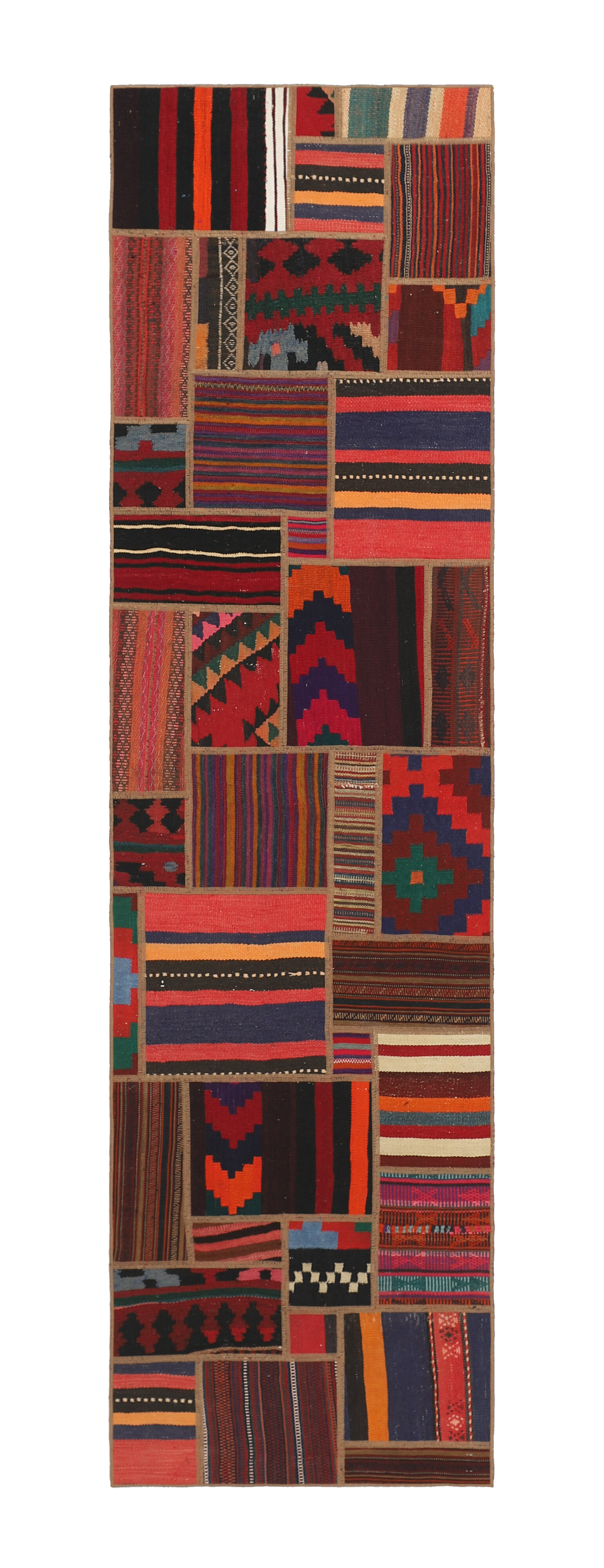Tekkeh Kelims are produced from older Persian Kelims that have been cut into smaller pieces, sewn together, and given a back cover. Tekkeh means piece, so Tekkeh Kelim means a patchwork rug where many pieces have been sewn together. Tekkeh Kelims are available in many sizes and have thoroughly unique patterns. The rugs are produced from 20-50 year old Kelims. Kelim rugs are hand woven rugs that are made using a special weaving technique, giving the rugs a thinner, felt-like quality. Tekkeh Kelim is produced of older Persian kelim, cut into smaller pieces, sown together and with a backside applied. Tekkeh is the Persian name for pieces, and Tekkeh kelim is an expression for a patchwork rug, where several pieces are sown together. Tekkeh Kelim is available in many sizes and all pieces has unique patterns. used a special weaving technique, that gives the rug a thinner and felt like quality.