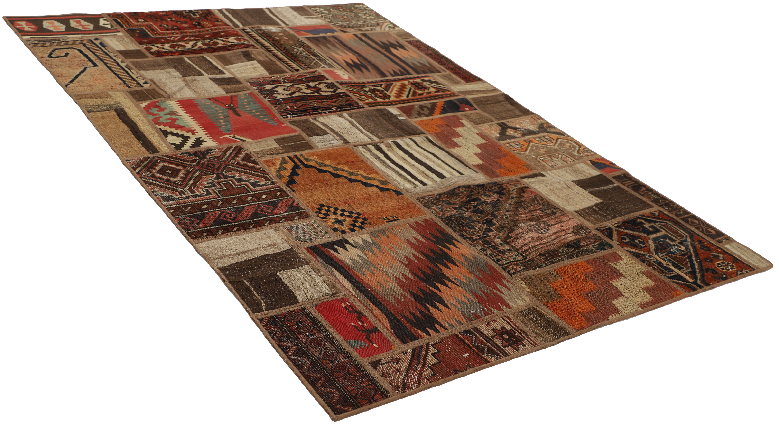 Tekkeh Kelims are produced from older Persian Kelims that have been cut into smaller pieces, sewn together, and given a back cover. Tekkeh means piece, so Tekkeh Kelim means a patchwork rug where many pieces have been sewn together. Tekkeh Kelims are available in many sizes and have thoroughly unique patterns. The rugs are produced from 20-50 year old Kelims. Kelim rugs are hand woven rugs that are made using a special weaving technique, giving the rugs a thinner, felt-like quality. Tekkeh Kelim is produced of older Persian kelim, cut into smaller pieces, sown together and with a backside applied. Tekkeh is the Persian name for pieces, and Tekkeh kelim is an expression for a patchwork rug, where several pieces are sown together. Tekkeh Kelim is available in many sizes and all pieces has unique patterns. used a special weaving technique, that gives the rug a thinner and felt like quality.