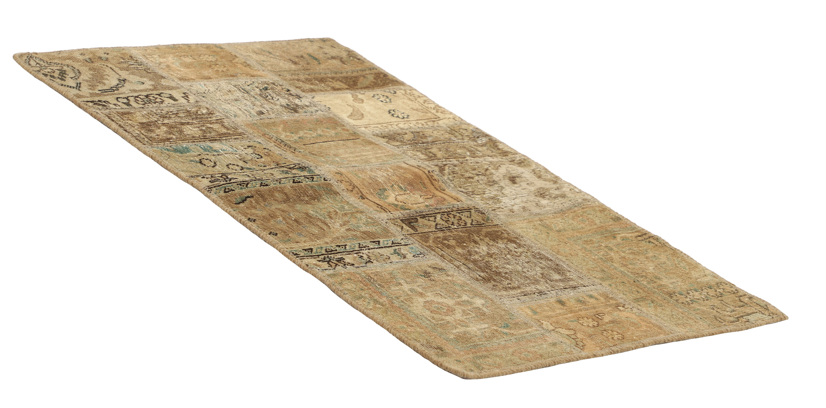 Vintage PatchworkItem no.: 1521783 Size: 80 cm x 126 cmVintage Royals are antique hand knotted rugs of Persian origin. The Patchwork Collection consists of old rugs that have been beyond repair, and instead cut into smaller pieces and used for patchwork. The Patchwork pieces are stonewashed and recoloured in light, dark, or bright colours, with the old pattern just being visible. The Patchwork rug forms a whole new and unique design. The rugs are of a very high quality and are available in large sizes. With the Vintage Royal Patchwork Collection, you do not just get a rug; you adorn your home with a unique piece of antique, Persian handcraft.