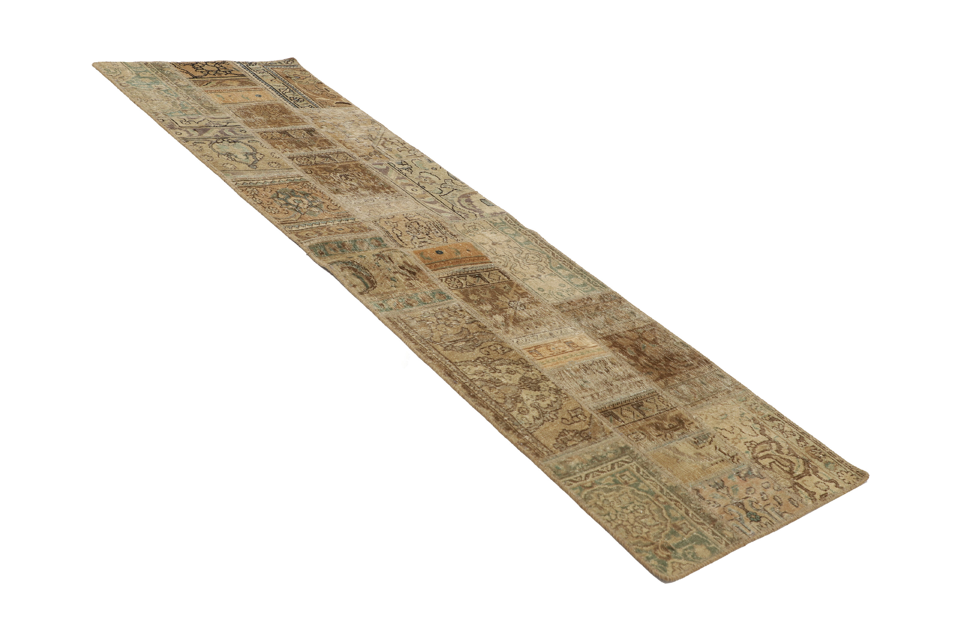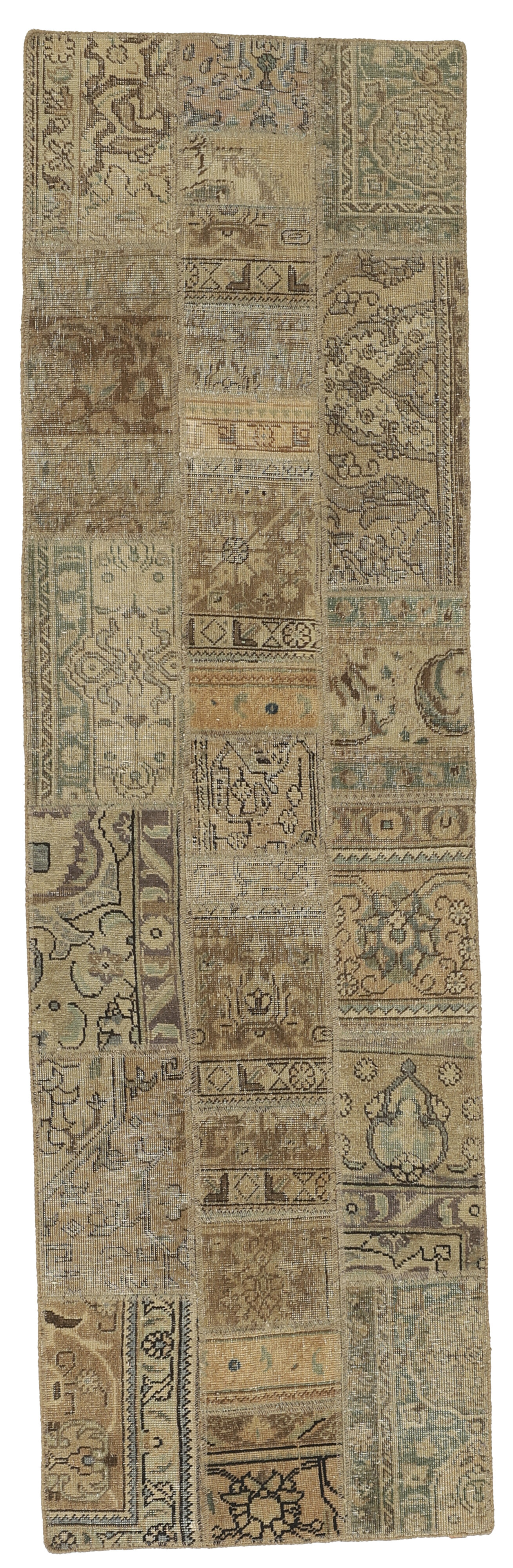 Vintage PatchworkItem no.: 1521799 Size: 76 cm x 258 cmVintage Royals are antique hand knotted rugs of Persian origin. The Patchwork Collection consists of old rugs that have been beyond repair, and instead cut into smaller pieces and used for patchwork. The Patchwork pieces are stonewashed and recoloured in light, dark, or bright colours, with the old pattern just being visible. The Patchwork rug forms a whole new and unique design. The rugs are of a very high quality and are available in large sizes. With the Vintage Royal Patchwork Collection, you do not just get a rug; you adorn your home with a unique piece of antique, Persian handcraft.