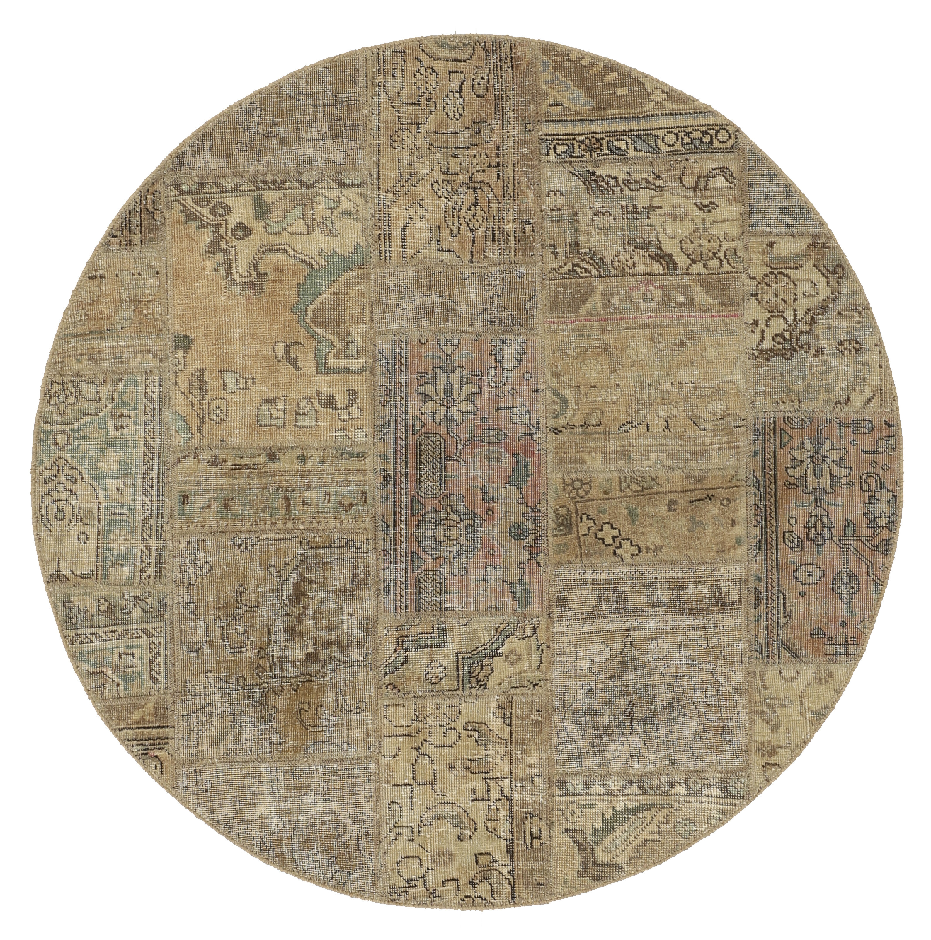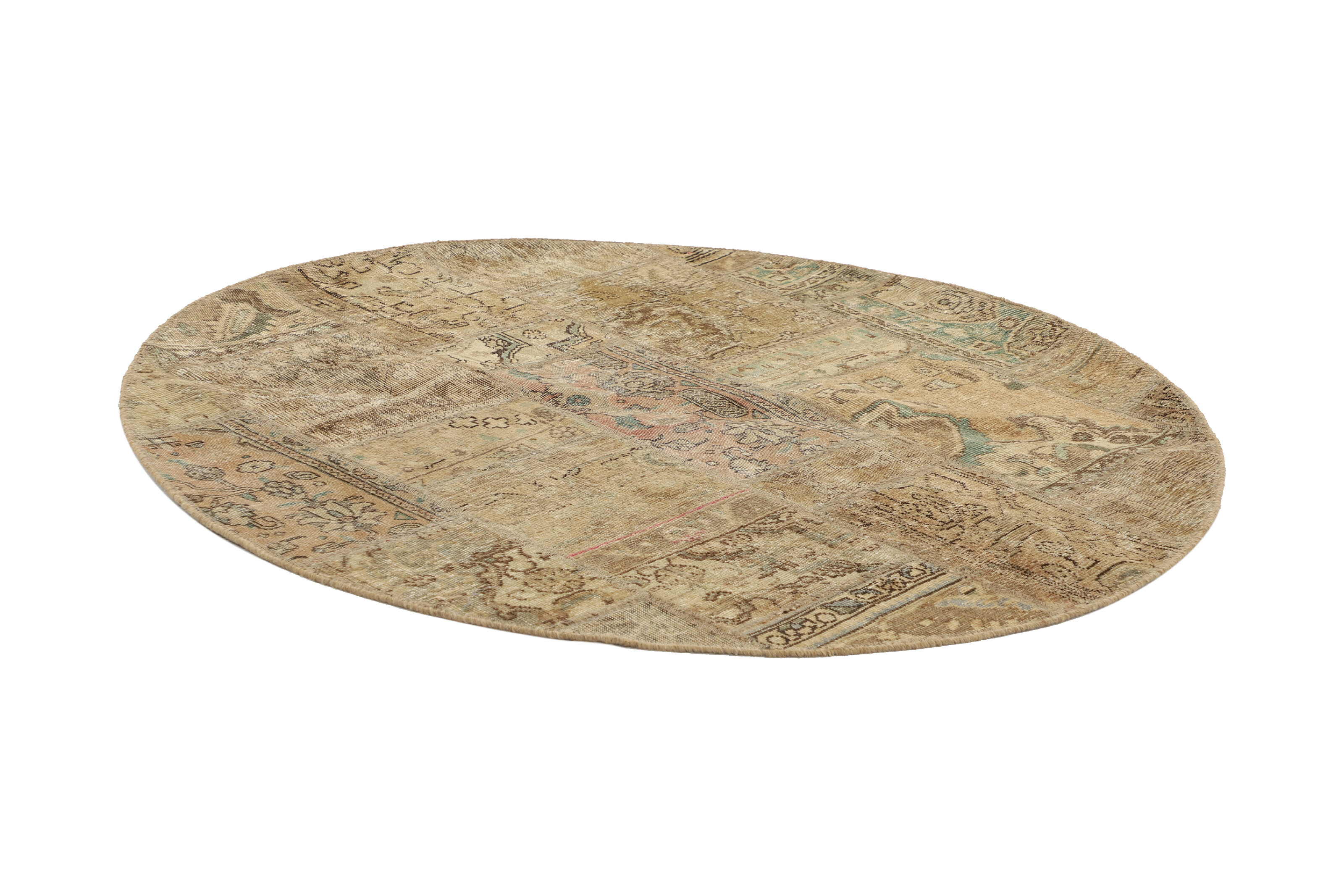Vintage PatchworkItem no.: 1521830 Size: 150 cm x 150 cmVintage Royals are antique hand knotted rugs of Persian origin. The Patchwork Collection consists of old rugs that have been beyond repair, and instead cut into smaller pieces and used for patchwork. The Patchwork pieces are stonewashed and recoloured in light, dark, or bright colours, with the old pattern just being visible. The Patchwork rug forms a whole new and unique design. The rugs are of a very high quality and are available in large sizes. With the Vintage Royal Patchwork Collection, you do not just get a rug; you adorn your home with a unique piece of antique, Persian handcraft.